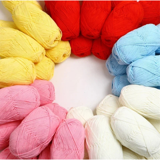 ไหมพรม 4 ply ไหมพรมคอตตอนนม milk cotton น้ำหนัก50กรัม 86สี ไหมเนื้อเนียนนุ่มไม่ระคายผิ ถักง่าย ถักโครเชต์