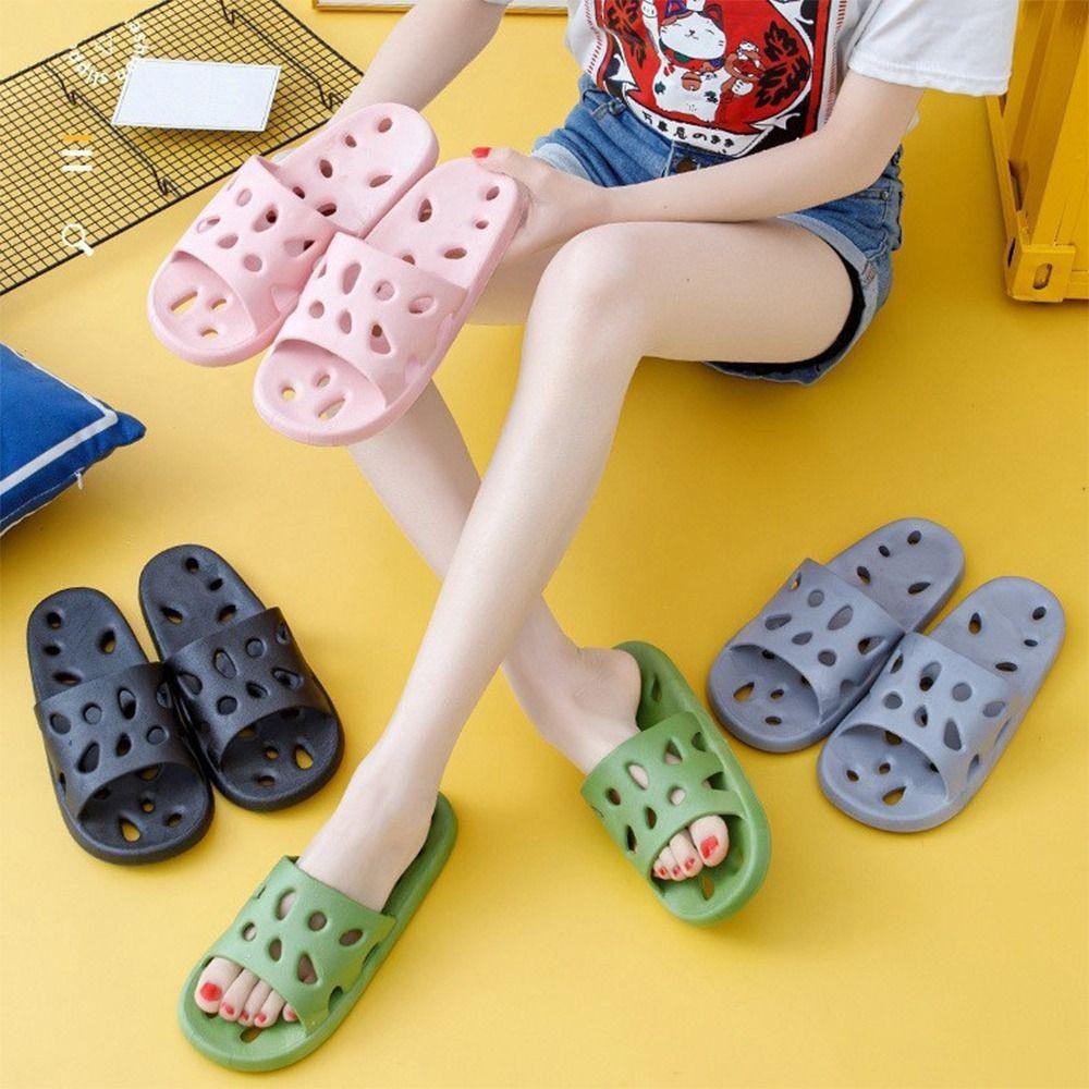 Uothhasome รองเท้าแตะผู้หญิง, รองเท้าแตะในห้องน้ําแบบกลวงกันลื่น, รองเท้าแตะคู่รักสีทึบ EVA น่ารักสําหรับใช้ในบ้าน
