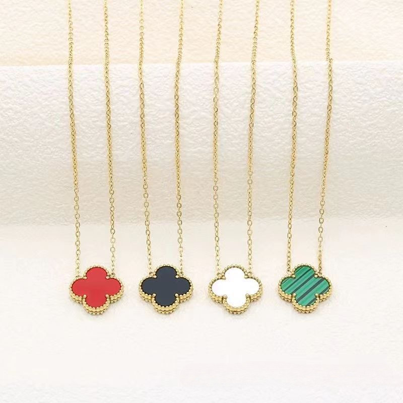 รุ่นสูงสองด้านโคลเวอร์สี่ใบเหล็กไทเทเนียมผู้หญิงทอง/เงิน/กุหลาบสร้อยคอทองหลายสีตัวเลือกความงามในเมืองต้อง-