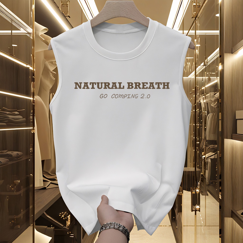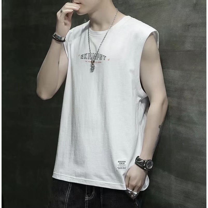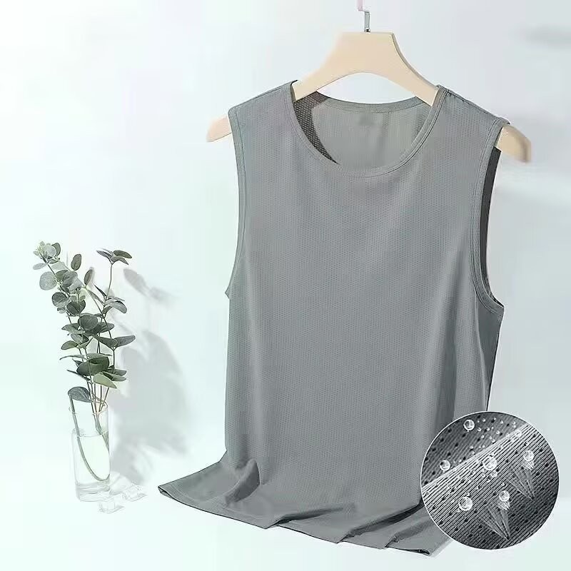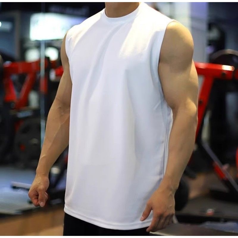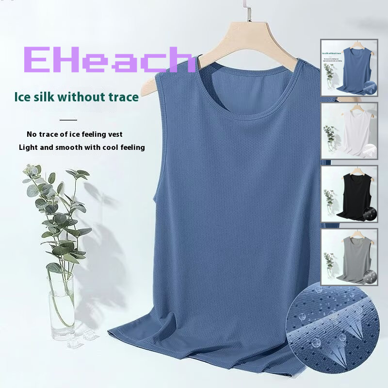EHeach เอ๊ะ เสื้อแขนกุดผ้าไหมน้ําแข็งสําหรับผู้ชายใส่สบายสําหรับกีฬาฤดูร้อน-สีขาว