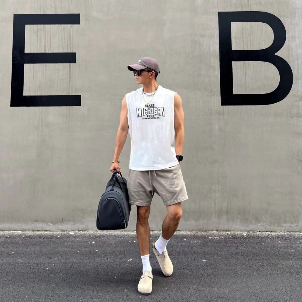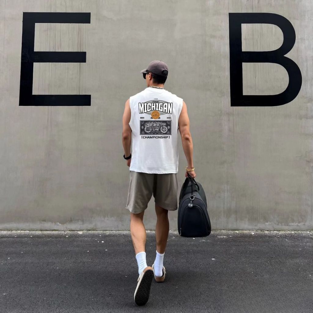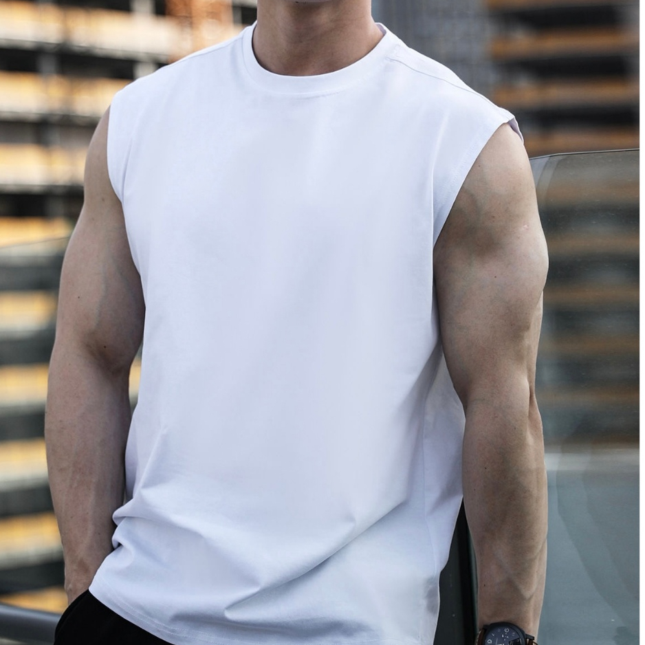 EHeach เอ๊ะ เสื้อแขนกุดผ้าไหมน้ําแข็งสําหรับผู้ชายใส่สบายสําหรับกีฬาฤดูร้อน-สีขาว