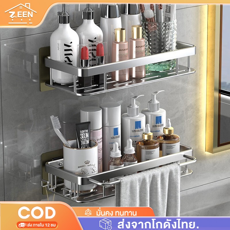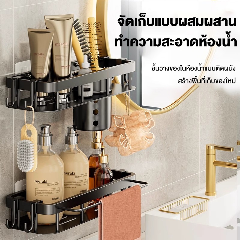 ชั้นวางของในห้องน้ำ ชั้นวางเครื่องสําอาง อลูมิเนียม แบบหนา ชั้นใส่ของแบบถ้วยดูด สไตล์ถ้วยดูด