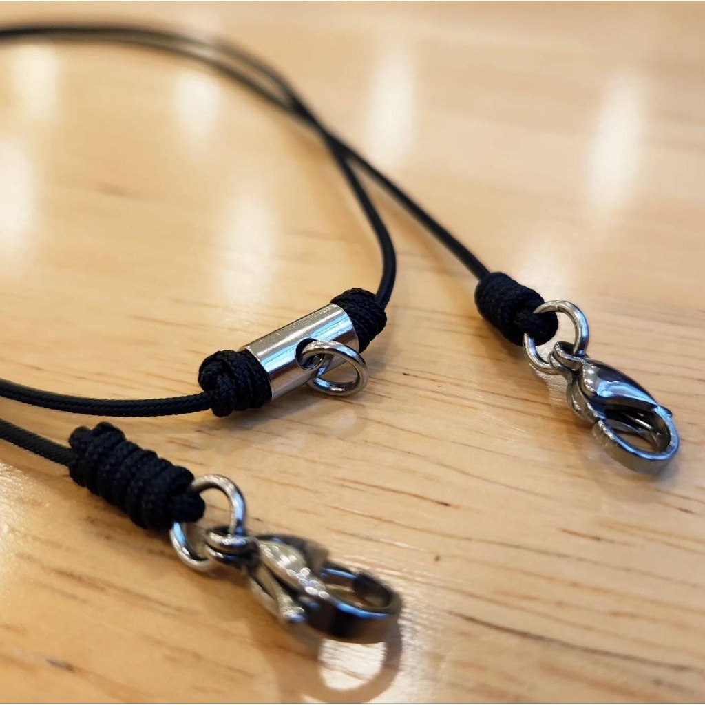สร้อยห้อยพระเชือกมู่ลี่ ด้านหน้าห้อยพระ2 ห่วงหรือตะกรุด+ด้านหลังอีก 1 ตัวแต่งเป็นสแตนเลส