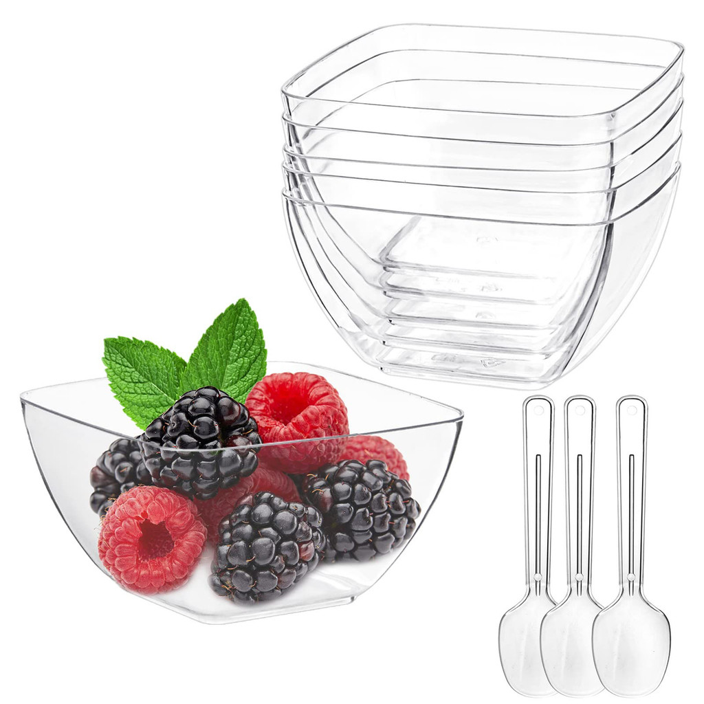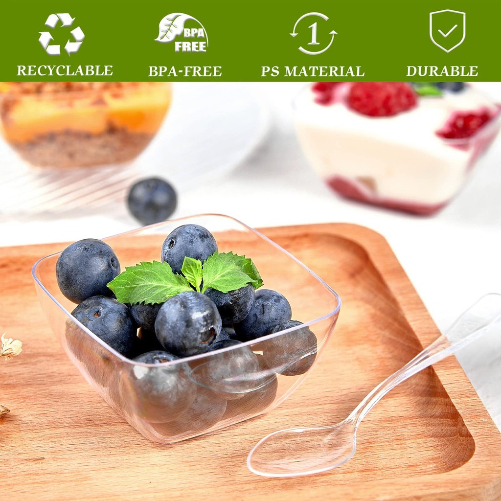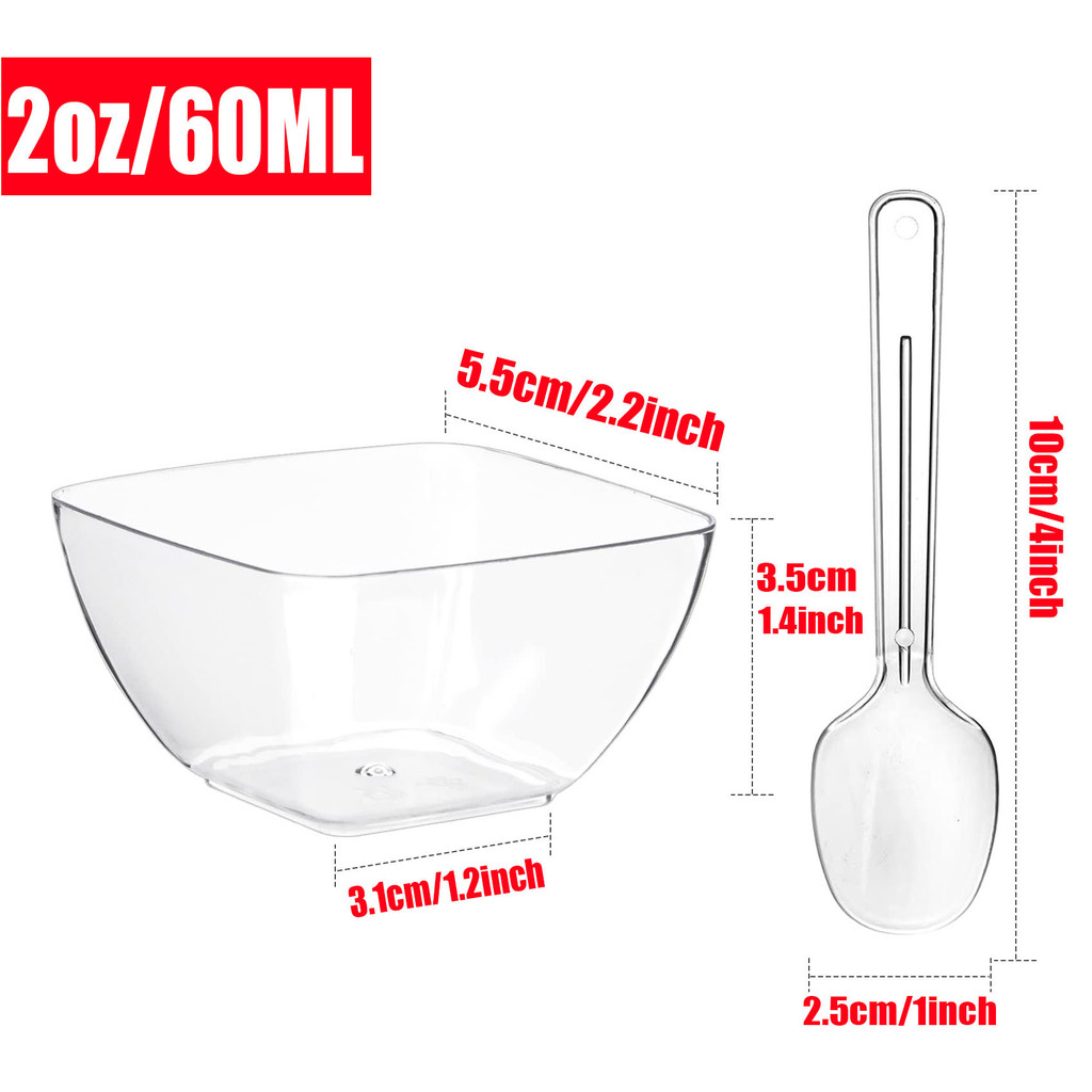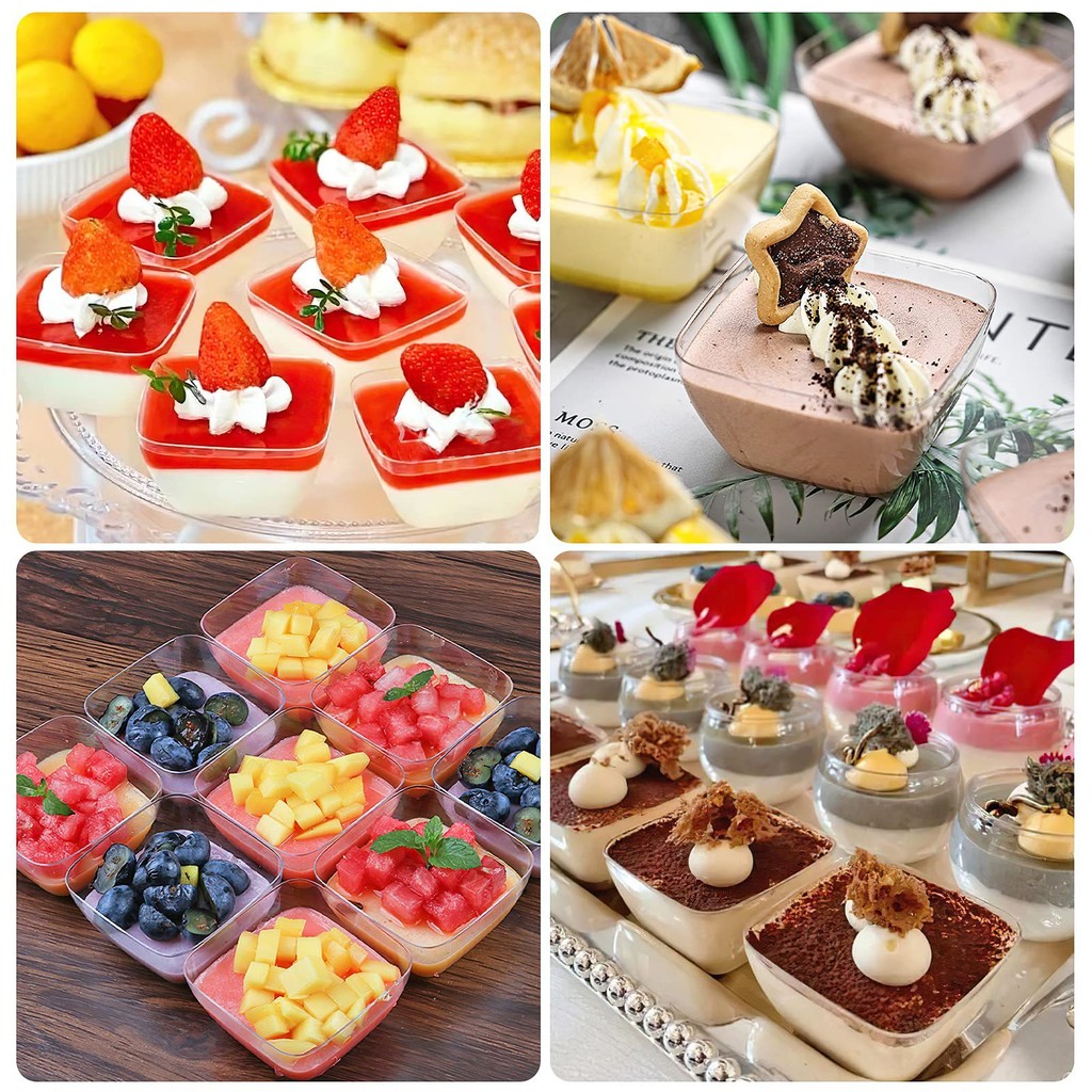 20ชิ้น 60มล. แก้วมูสแบบใช้ครั้งเดียวรูปสี่เหลี่ยมจัตุรัส แก้วขนมหวาน แก้วโยเกิร์ต แก้วเจลลี่ แก้วไอศกรีมรูปสี่เหลี่ยมใส
