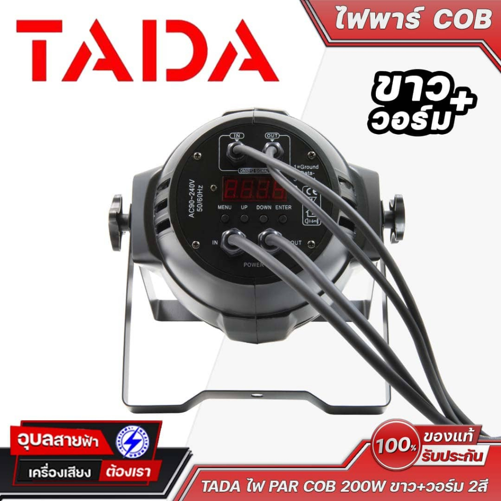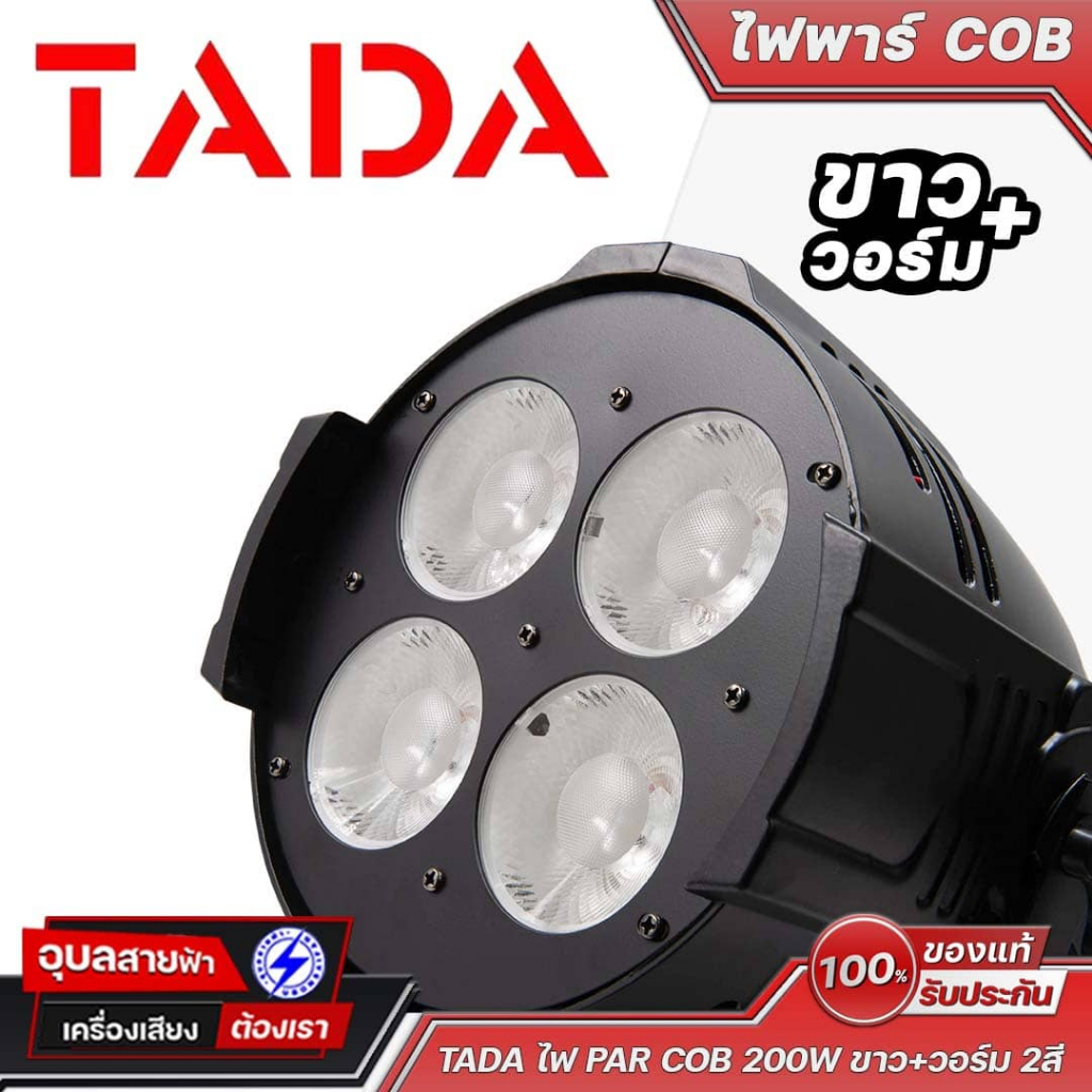 - TADA ไฟ PAR COB 200W ขาว+วอร์ม 2 สี กำลัง 200 วัตต์ หลอดอย่างดีจำนวน 4 หลอด ตัวโคมอลูมีเนียมหล่อ สีดดำ
