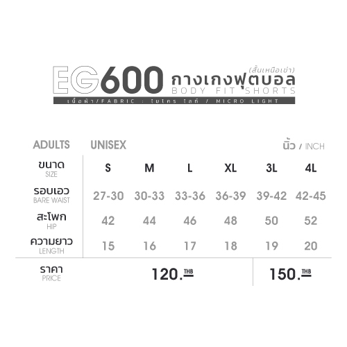 เสริมความคล่องตัวและความสบายในทุกการเคลื่อนไหวด้วย กางเกงฟุตบอลขาสั้นเหนือเข่า EGO SPORT รุ่น EG600 ออกแบบให้มีความยาวพอดีเหนือเข่า เพื่อการเคลื่อนไหวที่อิสระและกระชับรับกับสรีระ