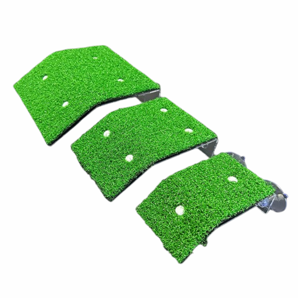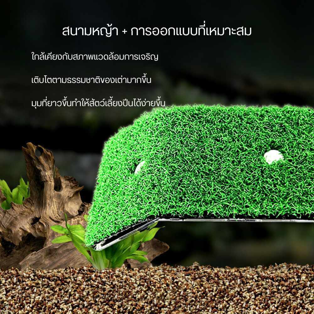 บันไดเต่า วัสดุ: หญ้าเทียมเต่า หญ้าเทียม: ที่เราใช้คือหญ้าเทียมสีเขียว ซึ่งนุ่มและไม่ลื่น ช่วยให้สัตว์เลี้ยงปีนได้ง่าย และออกแบบความยาวและมุม ในการปีนที่เหมาะสม ช่วยให้เต่าได้รับสภาพแวดล้อมที่อยู่อาศัยที่สะอาดและสะดวกสบาย ออกแบบมาสำหรับเต่าขนาดเล็ก กบ แล