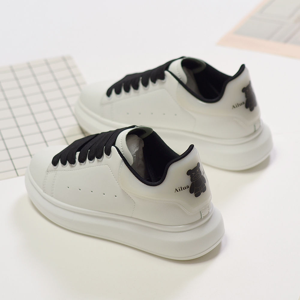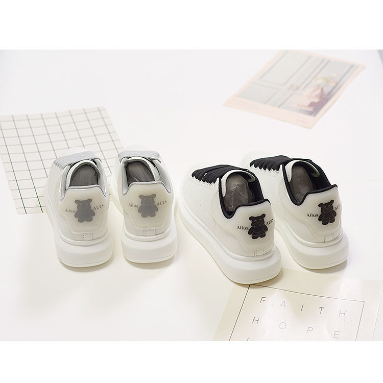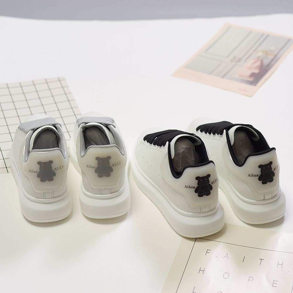 Mcqueen รองเท้าสีขาวผู้ชายผู้หญิงคู่สไตล์ Street Wear Bear All-Match รองเท้าหนาSoledกีฬารองเท้านักเรียนอินเทรนด์รองเท้าผู้ชายรองเท้าสบายๆ [คลังสินค้าพร้อม]