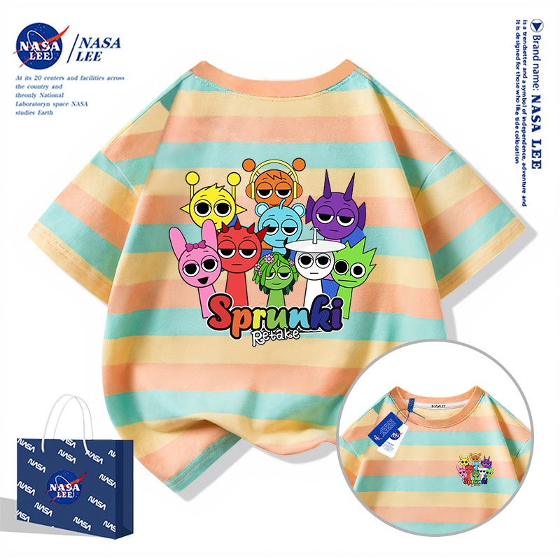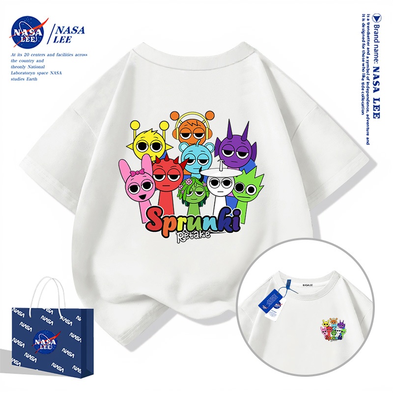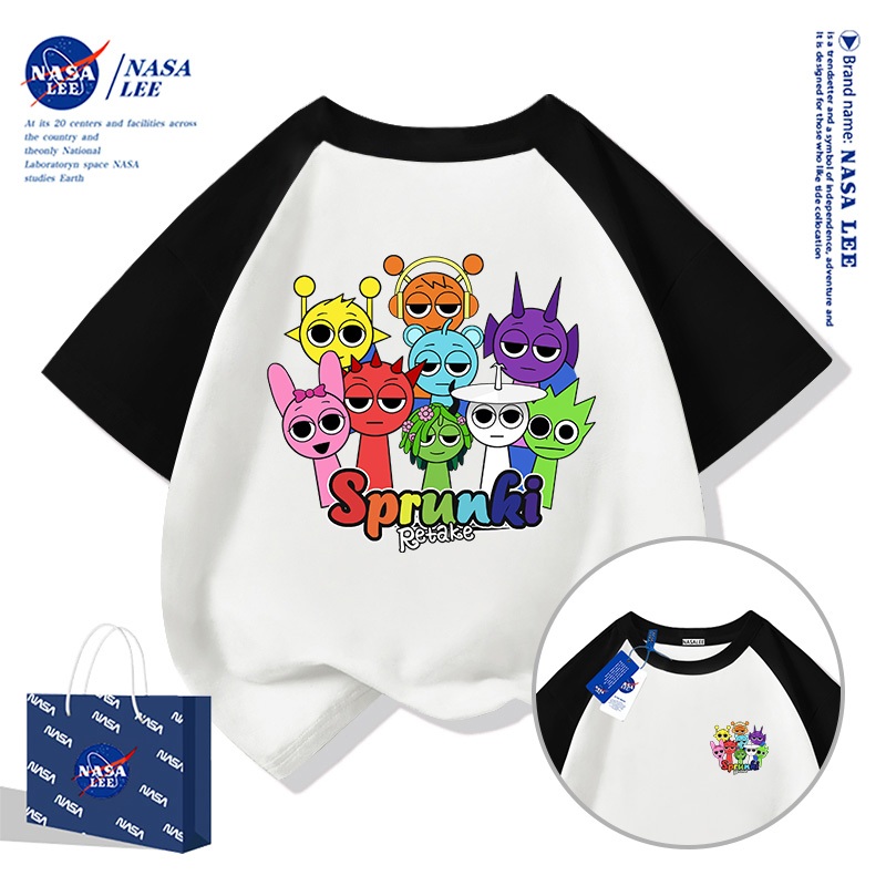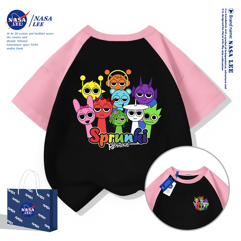 【จัดส่งภายใน 48 ชั่วโมง】 เสื้อยืดแขนสั้น NASA สไตล์อเมริกันสำหรับเด็ก ผ้าฝ้ายสีดำ ลายกล่องดนตรี – แฟชั่นยูนิเซ็กซ์สไตล์แคชวลสำหรับเด็กผู้ชายและเด็กผู้หญิง