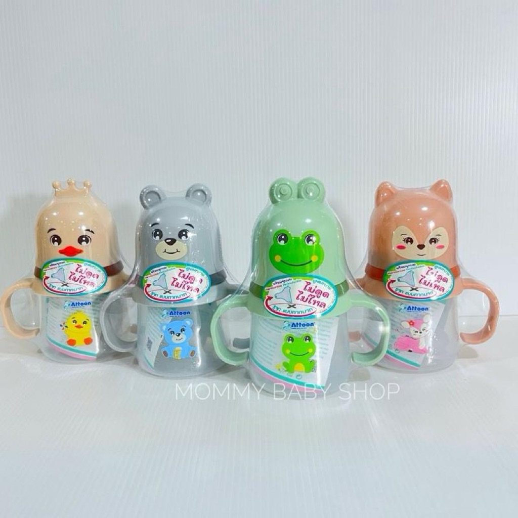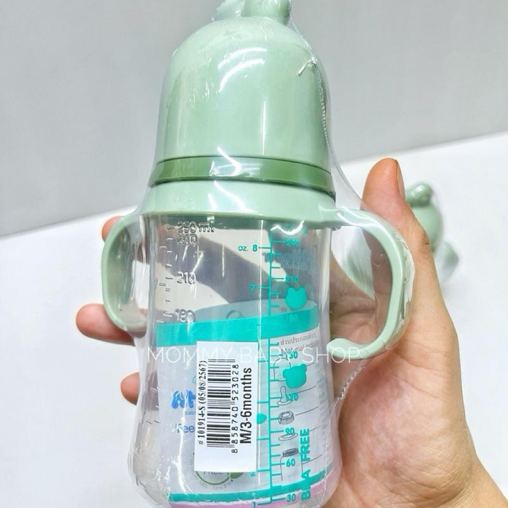 ขวดนม Attoon คอกว้าง พร้อมหูจับ ขนาด 4 ออนซ์ 8 ออนซ์ จุกไม่ดูดไม่ไหล
