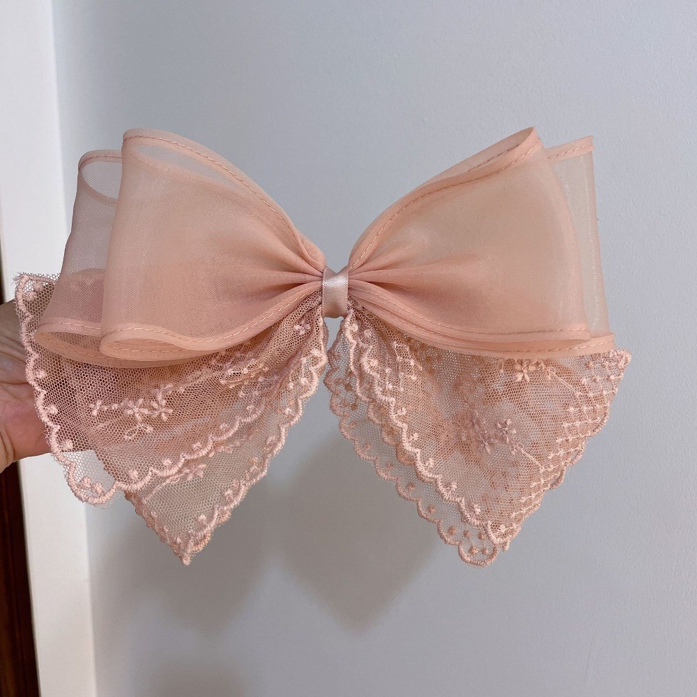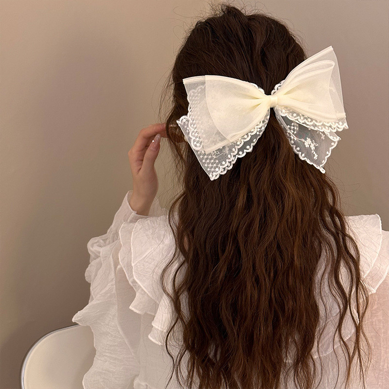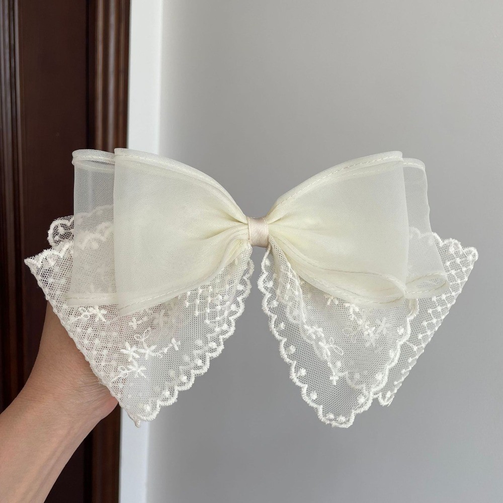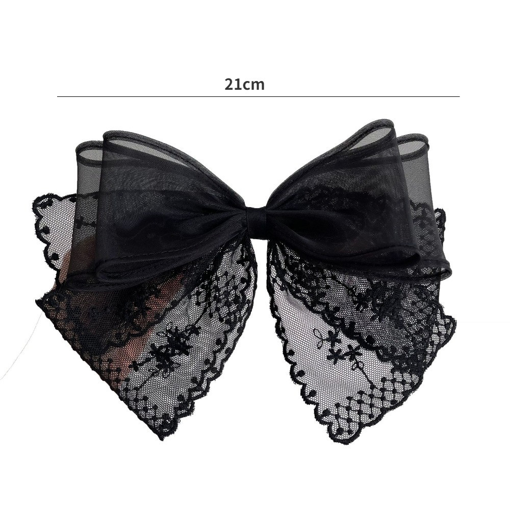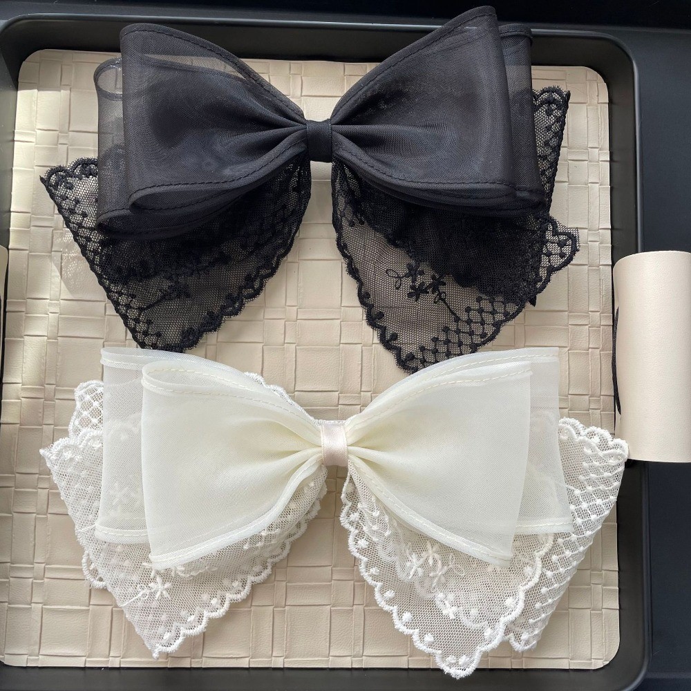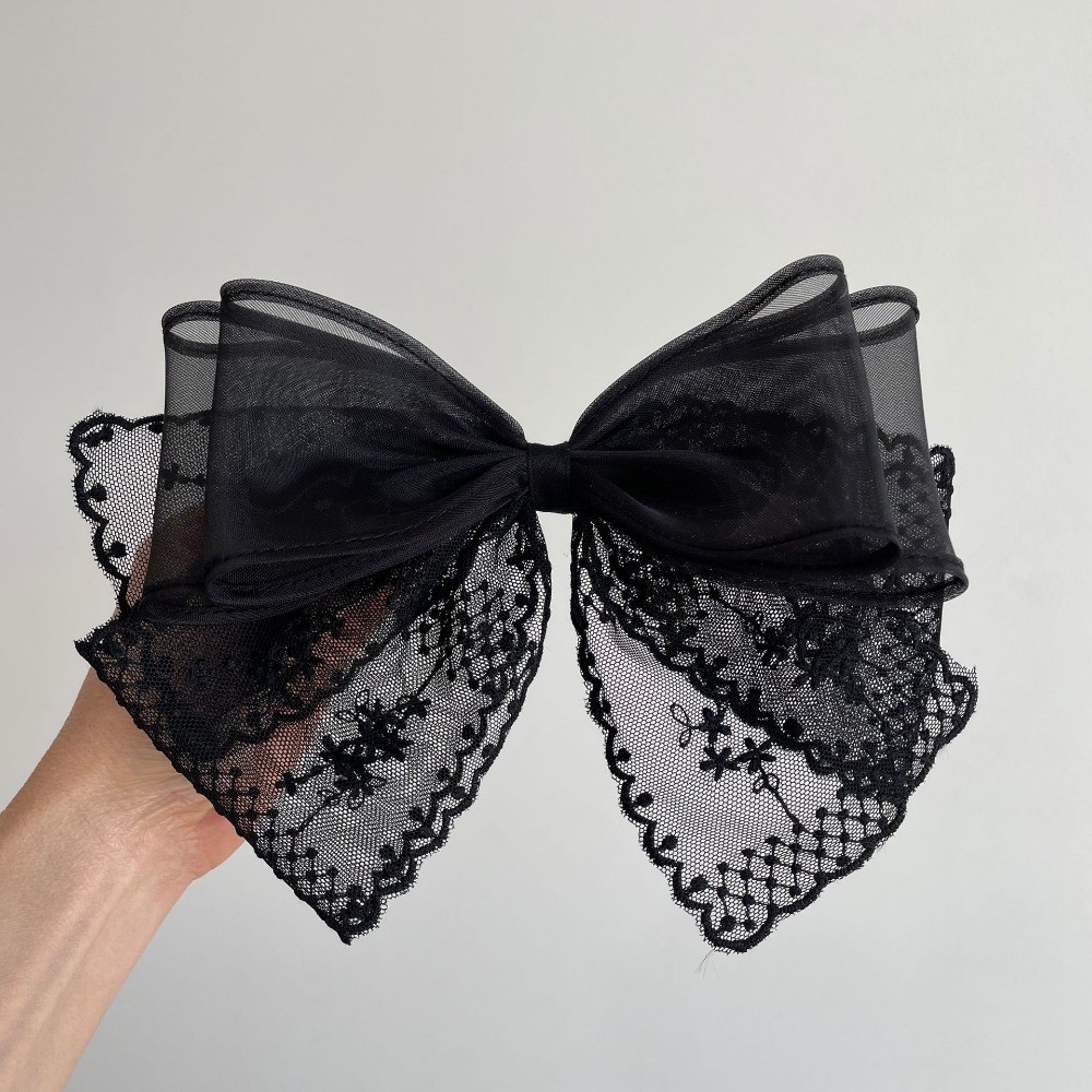 กิ๊บติดผมลูกไม้สีดําและสีขาวขนาดใหญ่สไตล์เกาหลีพร้อมเครื่องประดับผมด้านหลังศีรษะและคลิปด้านบน