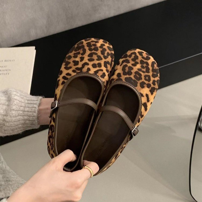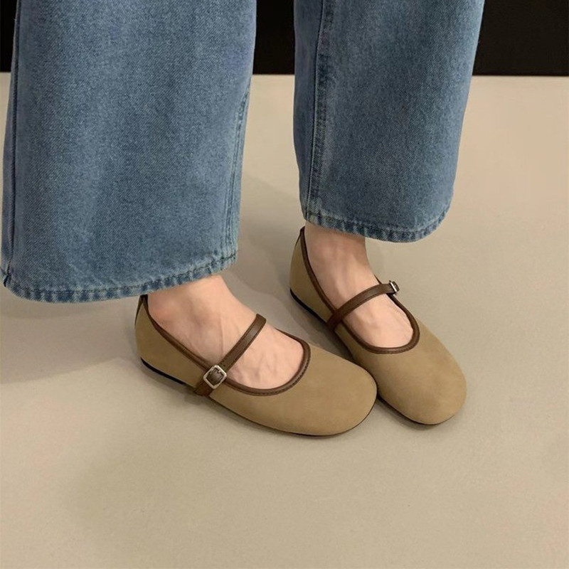 รองเท้าส้นแบนหัวกลมกลางแจ้งแฟชั่นสตรีและย้อนยุค