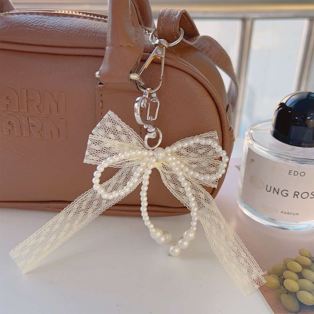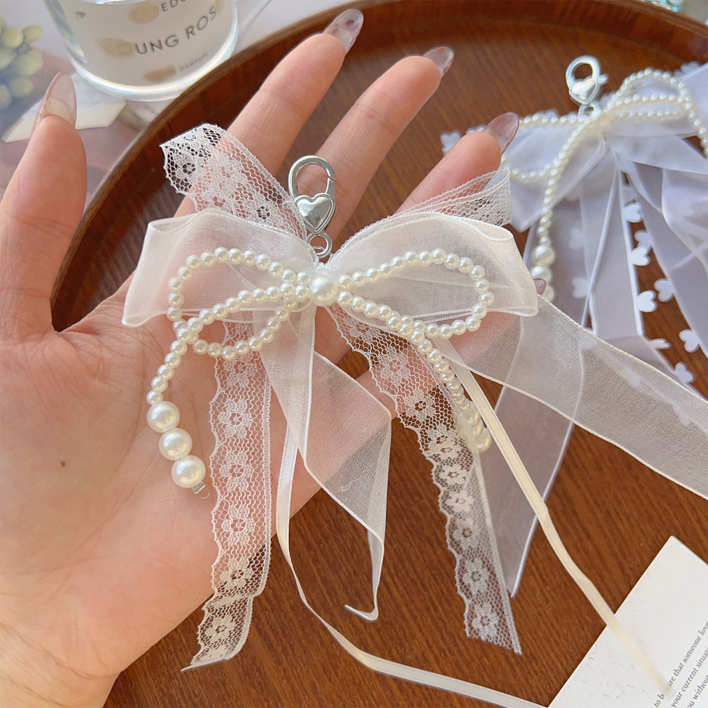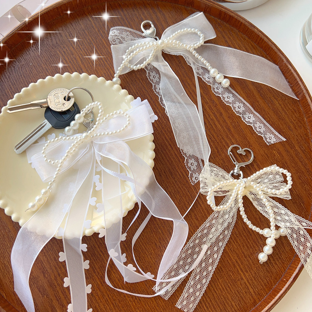 Sweet Girls Pearls Bead String Bowknot พวงกุญแจ – แฟชั่น Aesthetic Pearls ริบบิ้นโบว์จี้พวงกุญแจผู้หญิงกระเป๋าแขวนอุปกรณ์ตกแต่ง
