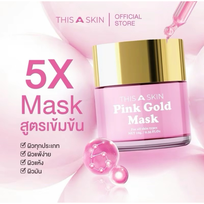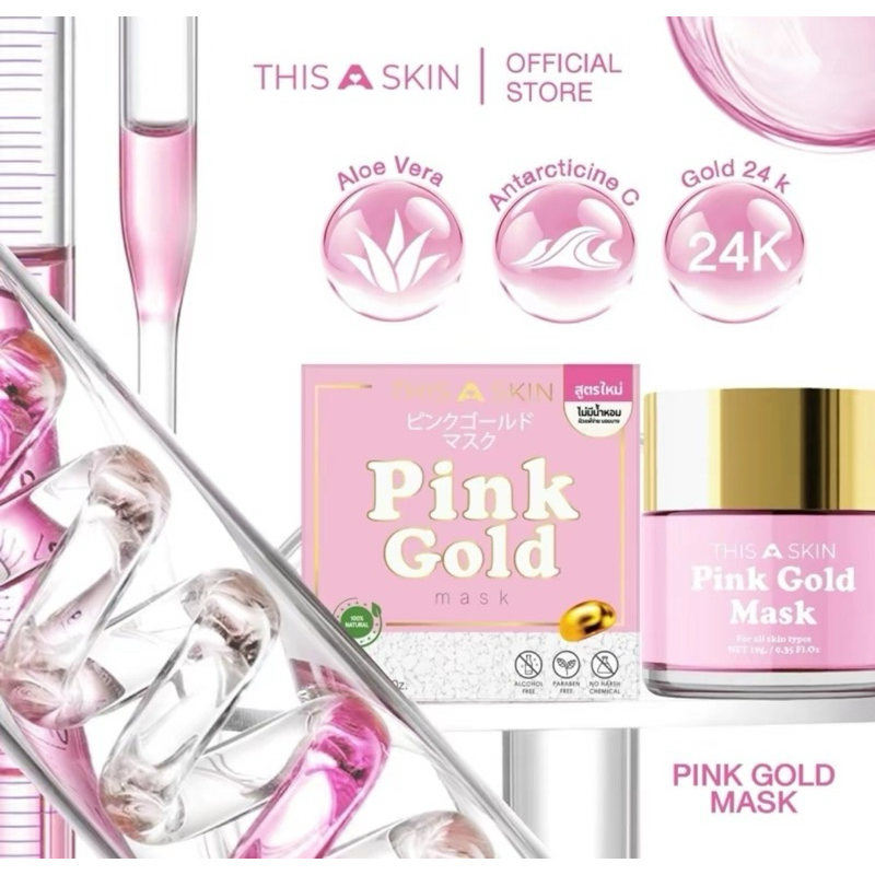[พร้อมส่ง+ลด50%ในไลฟ์] มาส์กพิงค์โกลด์ พิงค์โกลด์ Pink Gold Mask THISASKIN ลดรอยดำรอยแดง ลดสิวหน้าขาวใส