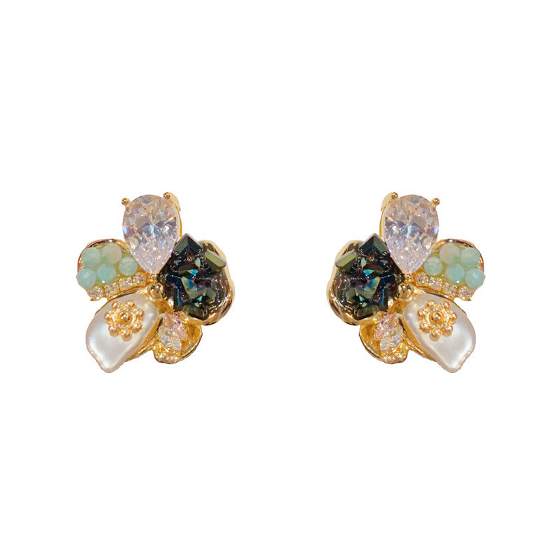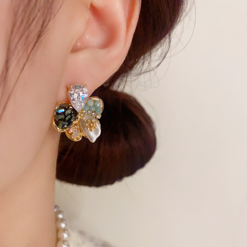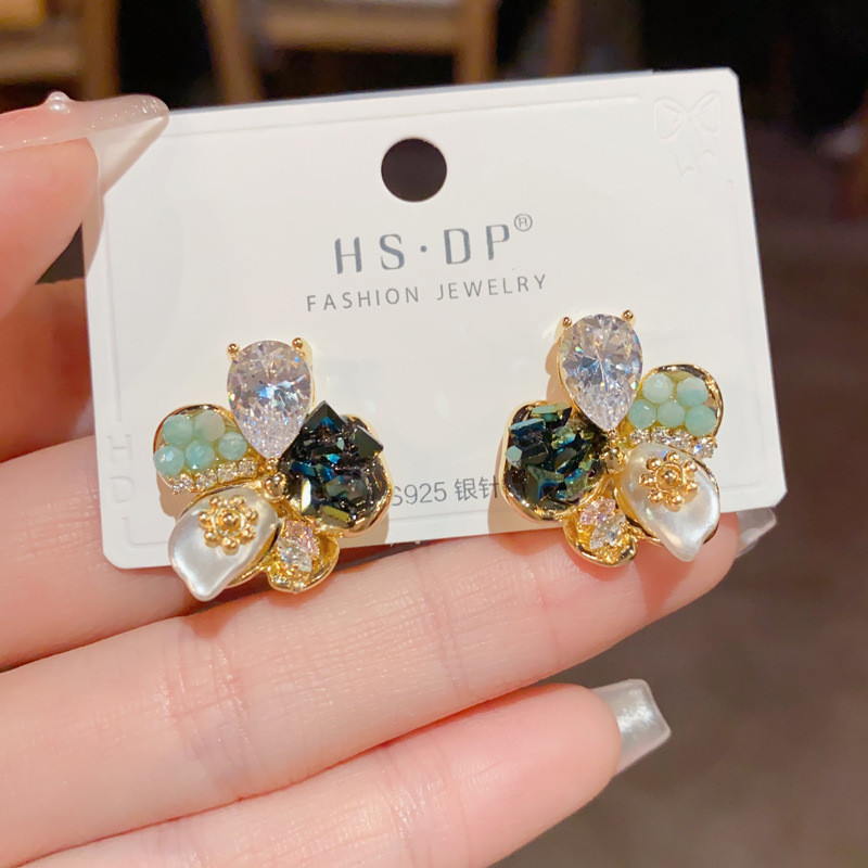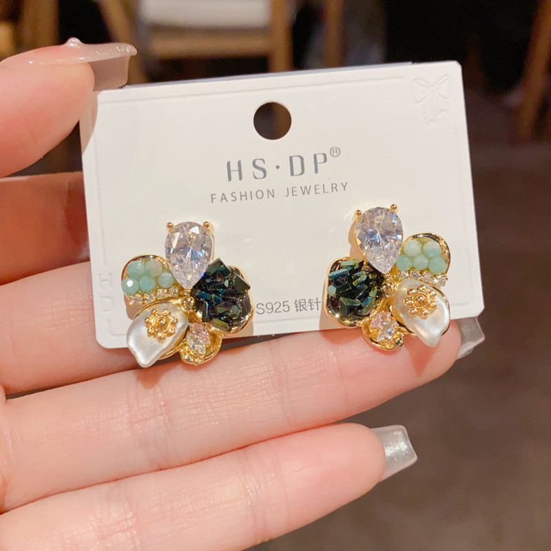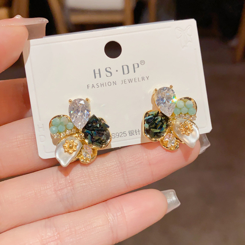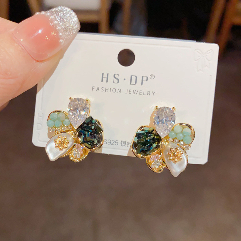 สไตล์เกาหลีแฟชั่นแสงหรูหราแฮนด์เมดต่างหูดอกไม้ ส925 เงินเข็มประณีตต่างหูเฉพาะ