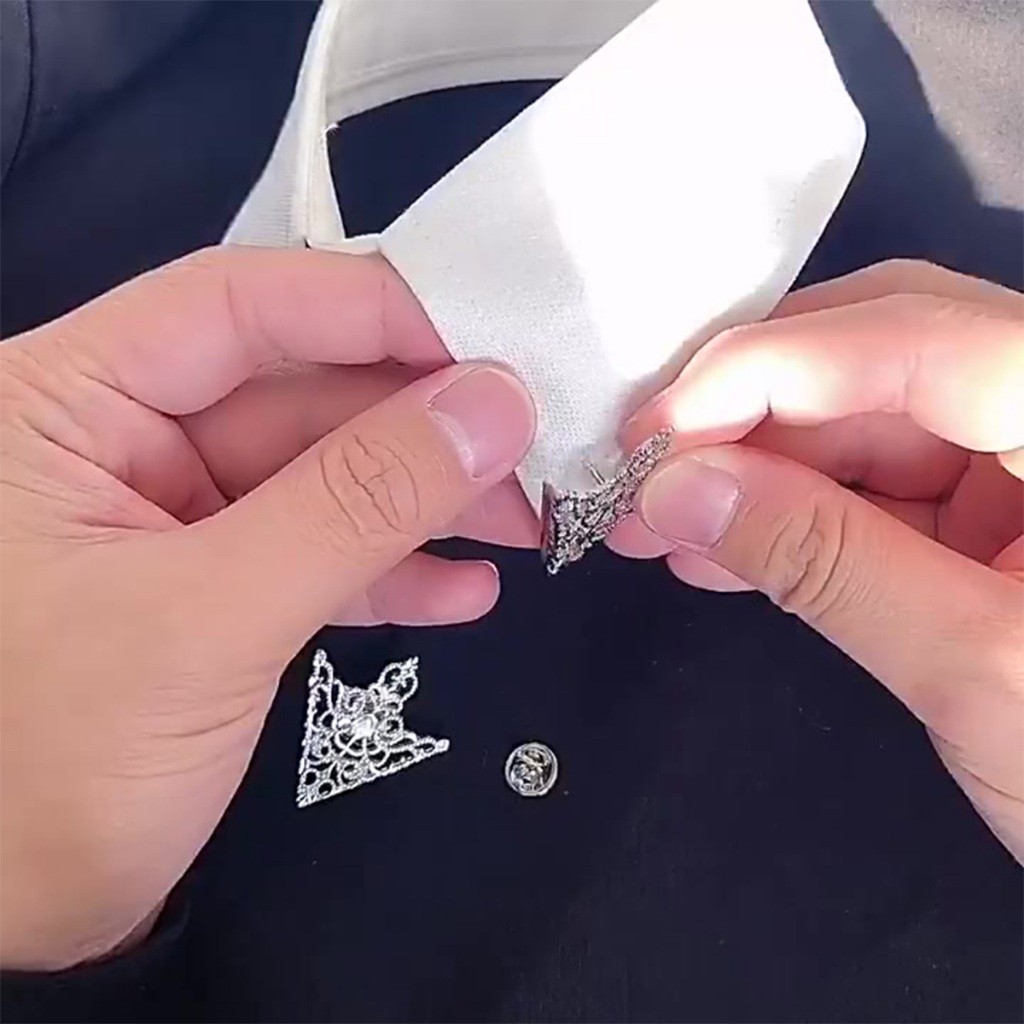 เข็มกลัดติดเสื้อ เข็มกลัดคอเสื้อสามเหลี่ยม แบบโลหะผสม สำหรับชายและหยิง
