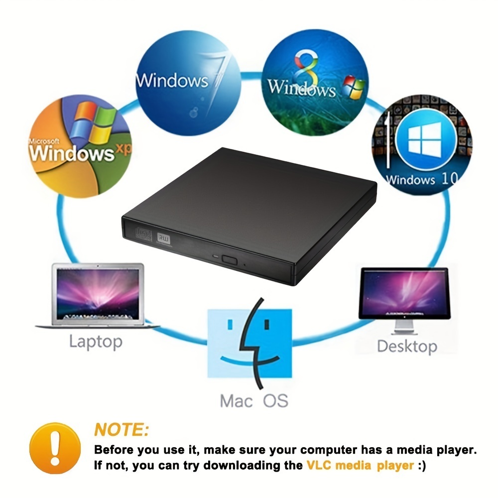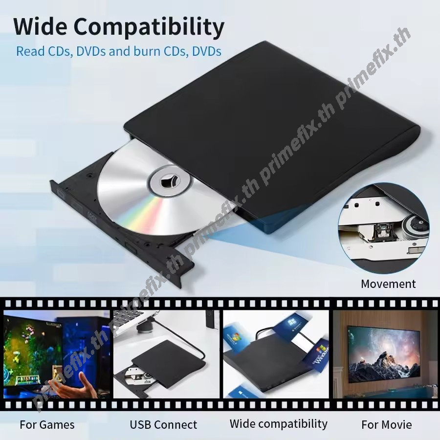 ?ส่งเร็ว? USB 2.0 DVD-RW External Slim Writer / Burner / rewriter / CD Rom Drive แบบพกพา อ่านเขียน