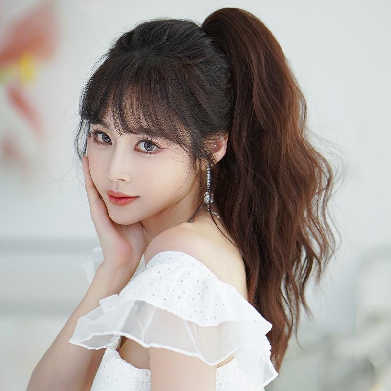 หางม้าหนีบผมลอนหยิก ความยาว 45 ซม. : (ป้ายชมพู) ไหมสังเคราะห์เกรดดี คุณภาพดี ไม่มีเงา – แถมหวี –
