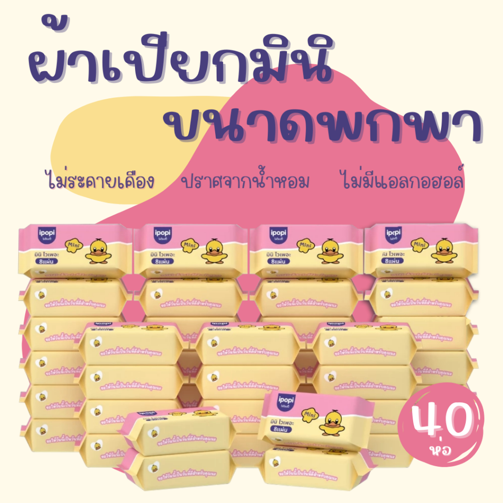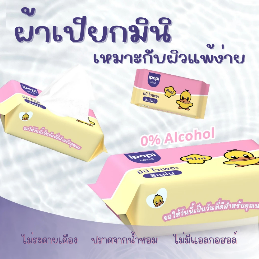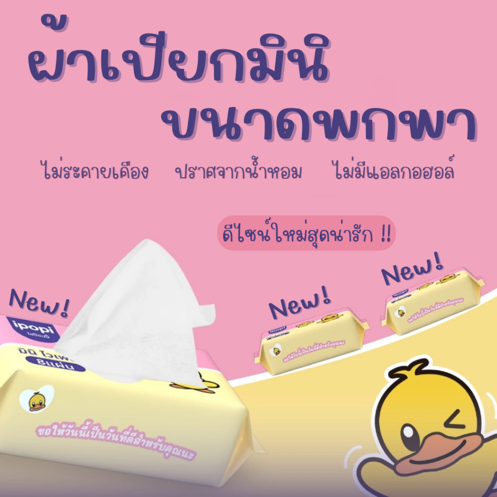 ทิชชู่เปียก พกพา 1 หิ้ว (8ห่อเล็ก) Wet Wipes ทิชชู่เป็ด หนานุ่มกว่ากระดาษทั่วไป ไม่ระคายเคืองผิวปราศจากแอลกอฮอล์ #EL18