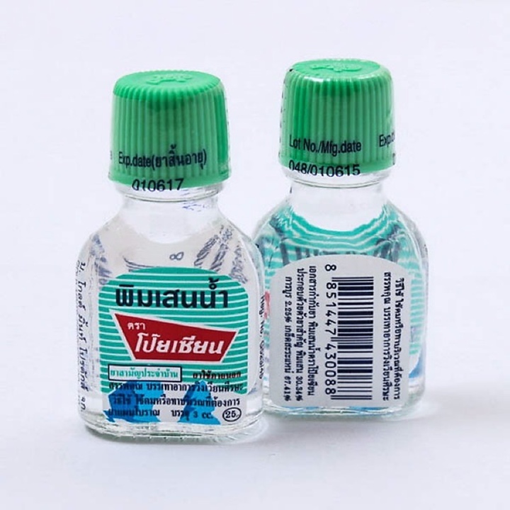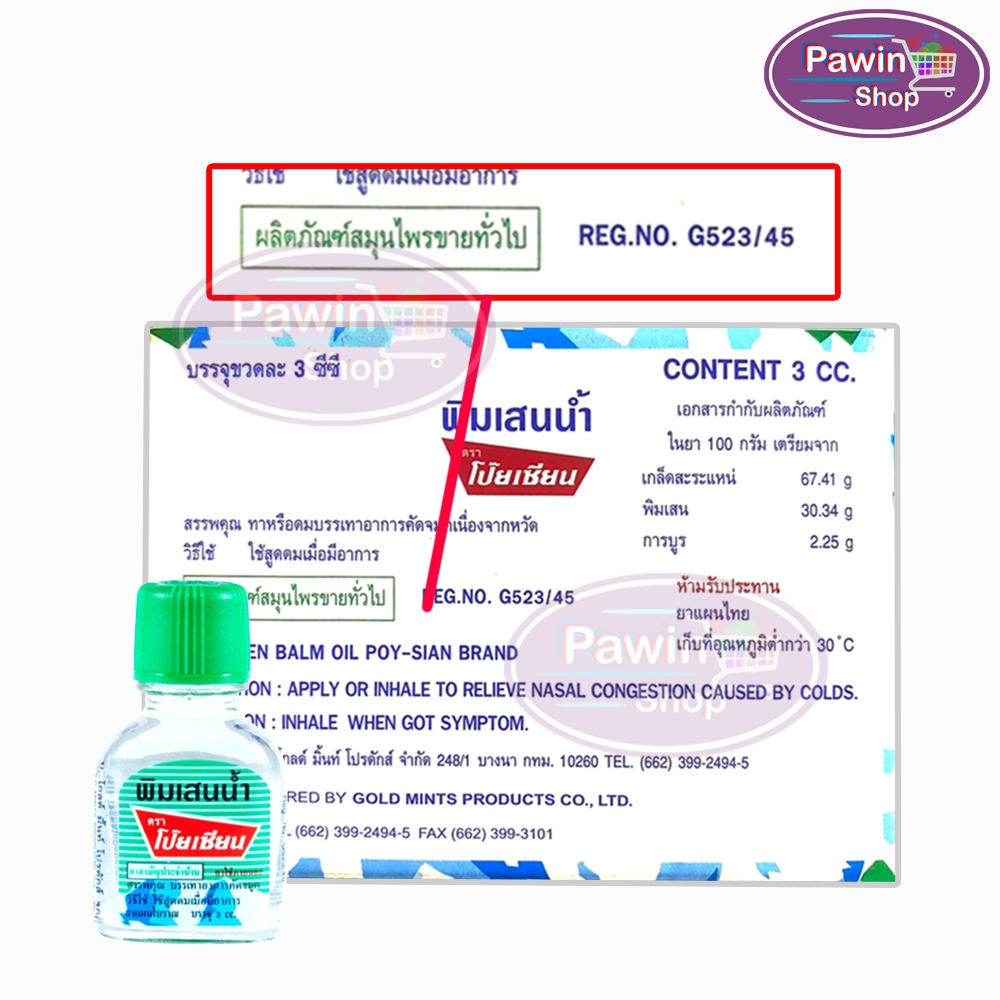 พิมเสนนํ้า ตราโป๊ยเซียน ขวดแก้วแบน 3ซีซี [12 ขวด] EE 8102 Poysian Poy-Sian Balm Oil โป๊ยเซียน ผลิตภัณฑ์สมุนไพรขายทั่วไป