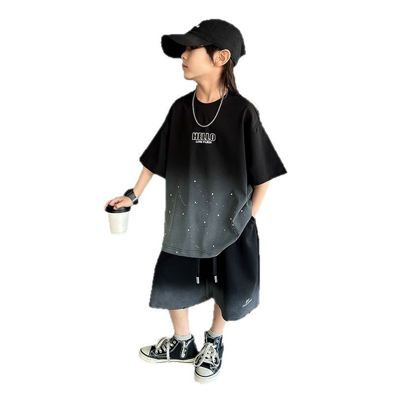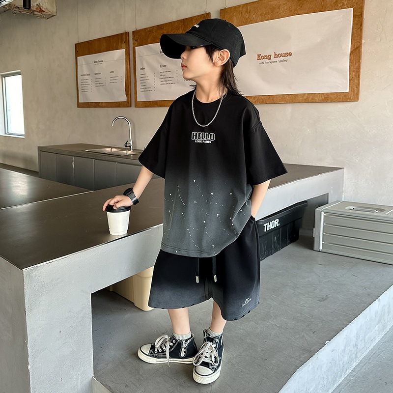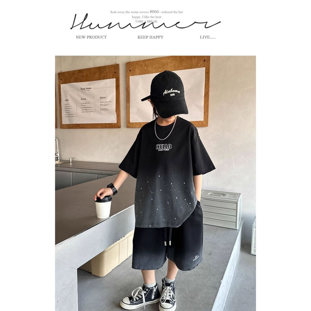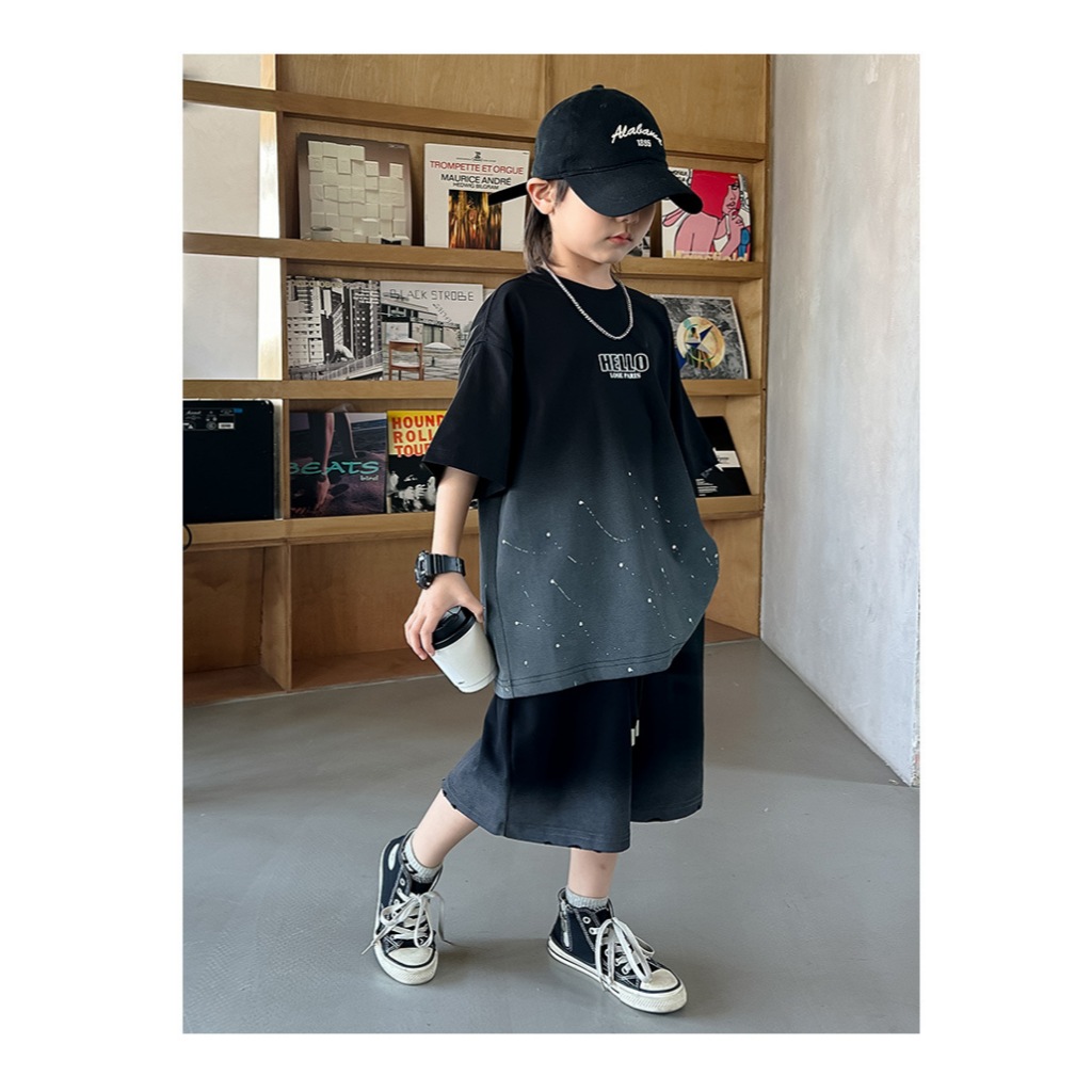 ชุดเซ็ท 2 ชิ้นเด็กผู้ชาย เสื้อแขนสั้น+กางเกงขาสั้นเอวยางยืด