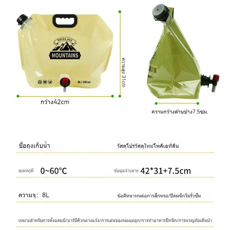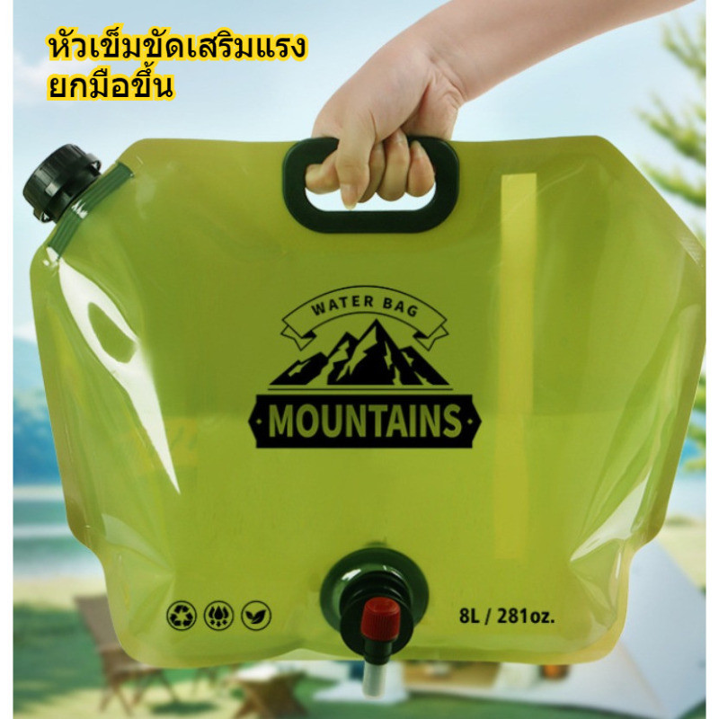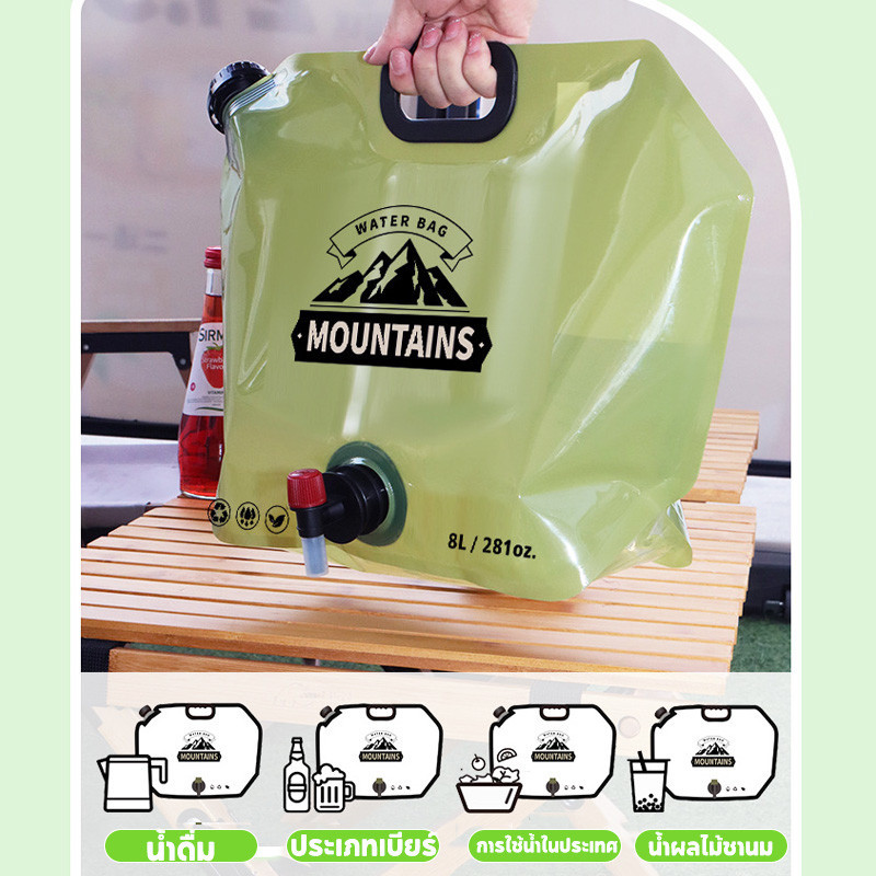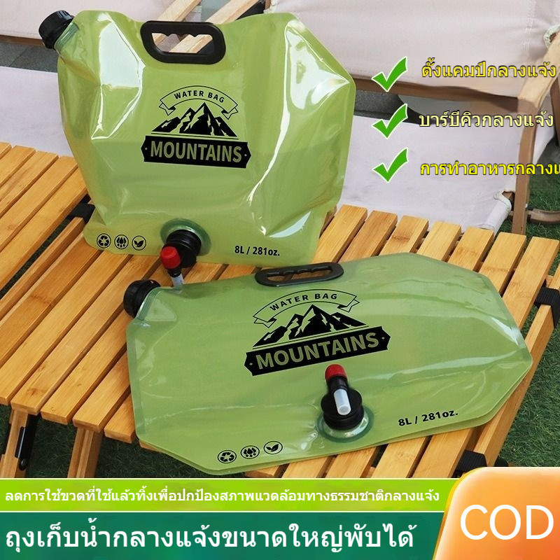 ตั้งแคมป์ถุงน้ำ 8L ความจุขนาดใหญ่พับตั้งแคมป์ถุงน้ํา เดินป่า ปิกนิก รีไซเคิล