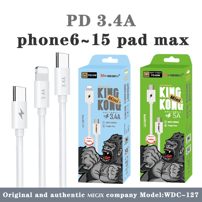 สายชาร์จ wdc-127 kingkong สายชาร์จ 3.4A ชาร์จเร็ว fast charging (รับประกัน 1 ปี)for ip 7-16pro max/Android