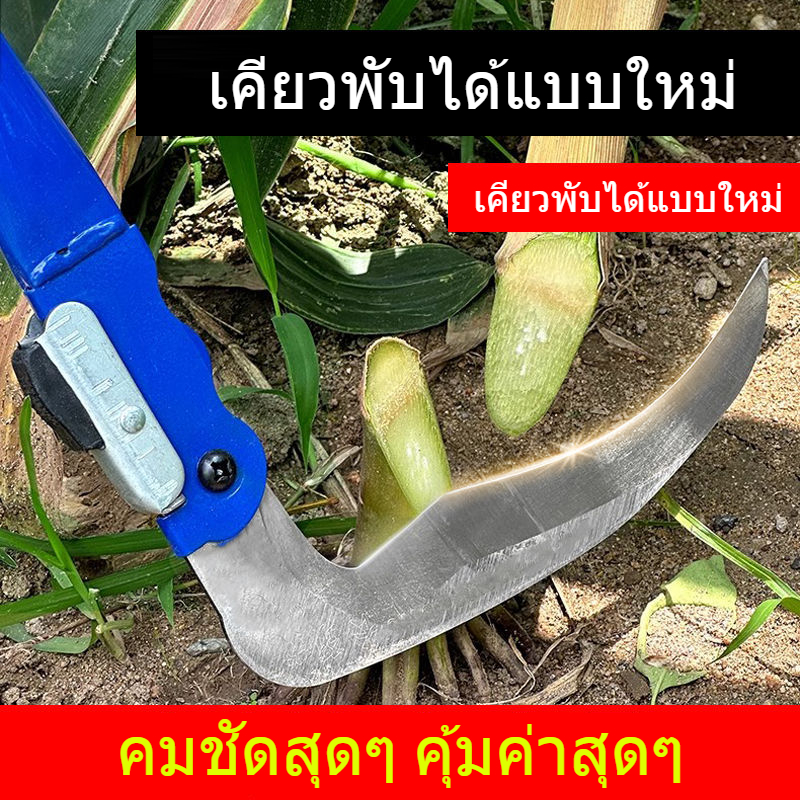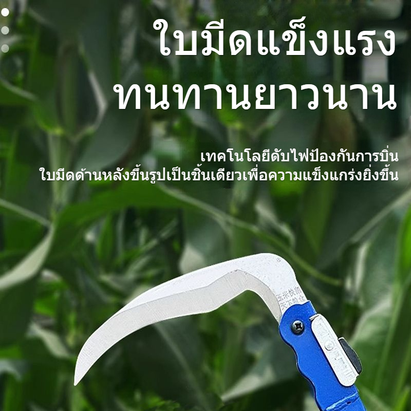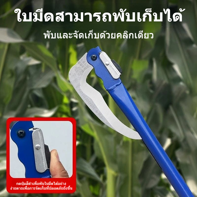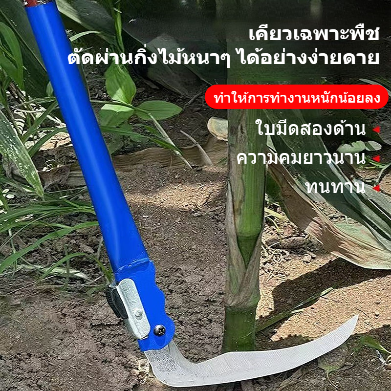 GOYES เคียวพับเก็บพืชผล เคียวตัดหญ้า ด้ามยาว ใช้งานได้ 2 ด้าน เคียวตัดหญ้าแบบยาว