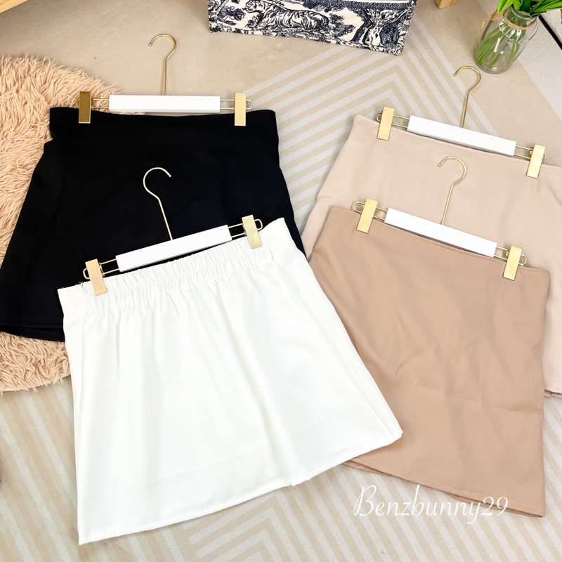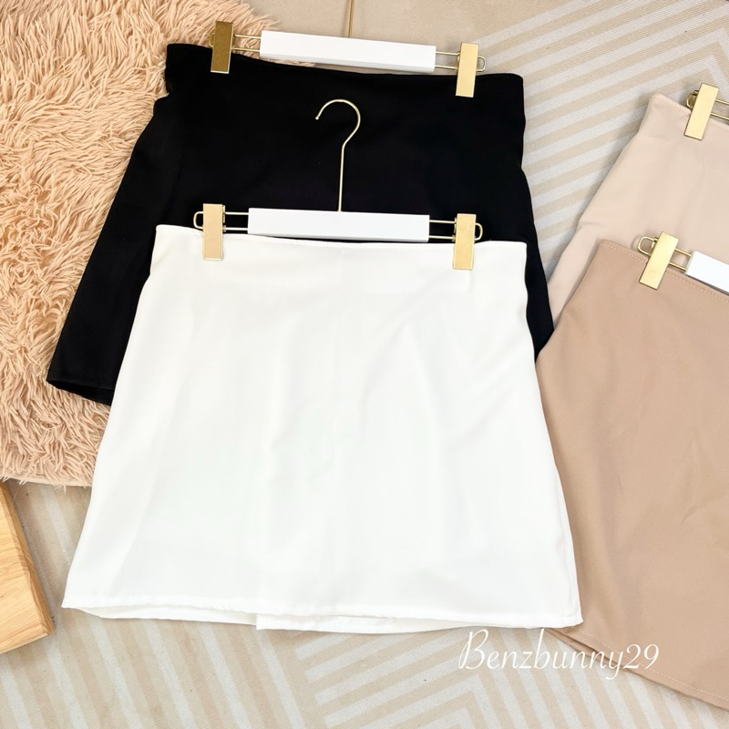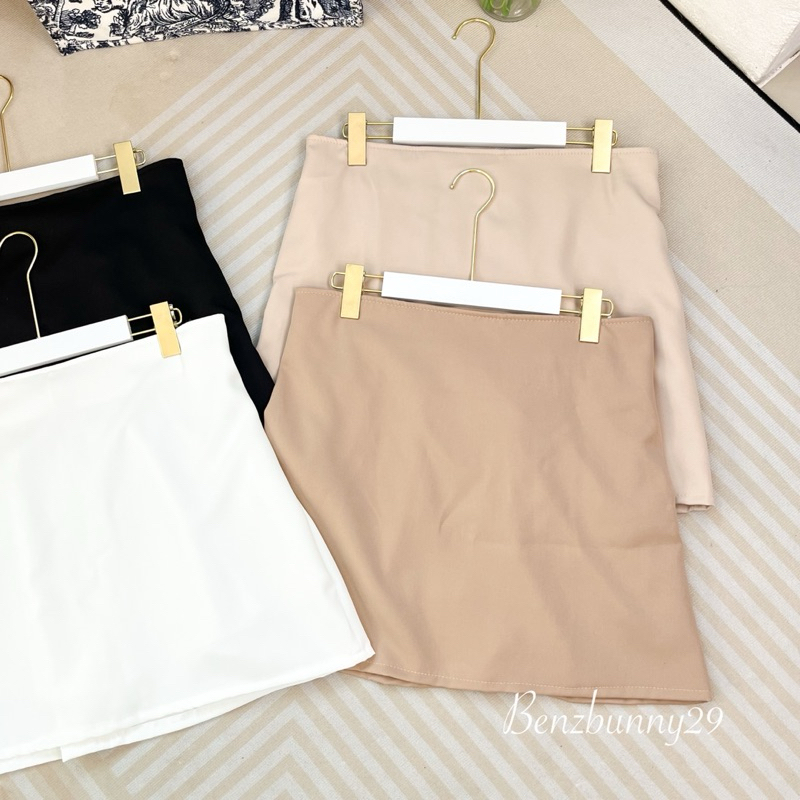กระโปรงเอวสูงขอบเรียบ (ซิปข้าง) ทรงเอสาวอวบผ้าบาร์บี้มีซับใน เอว 30-40“ Benzbunny29 Skirt Women #1027