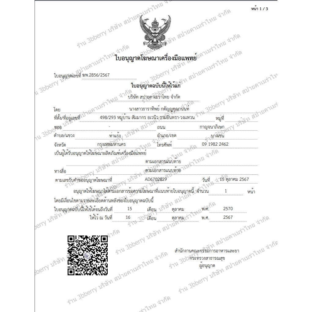 ใบอนุญาติโฆษณา เลขที่ ฆพ.2856/2567