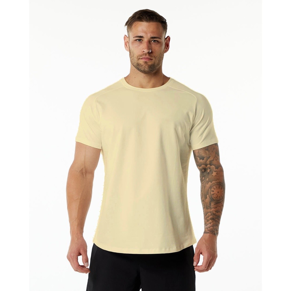 เสื้อยืดลําลองแขนสั้นผ้าฝ้ายสําหรับผู้ชาย ลูเลมอน กลัว คอกลม, แข็ง สีสัน เหมาะสําหรับกีฬาและออกกําลังกาย Tx07