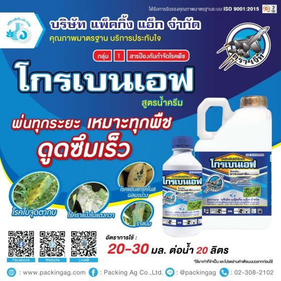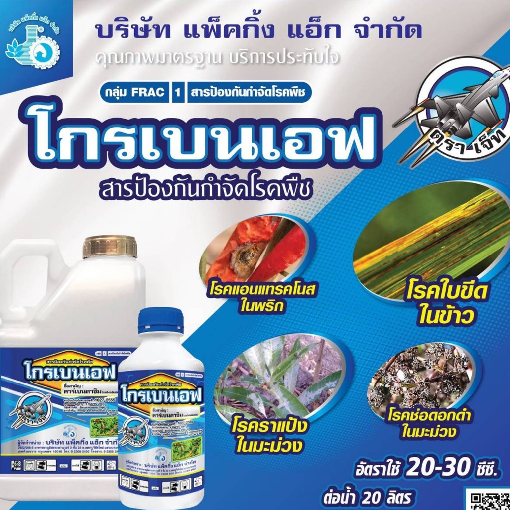 โกรเบนเอฟ คาร์เบนคาซิม 50% ชนิดน้ำครีม สูตรเข้มข้น เนิ้อดี ละลายง่าย ป้องกันกำจัดโรคพืชได้หลากหลายชนิด ออกฤทธิ์ดูดซึม