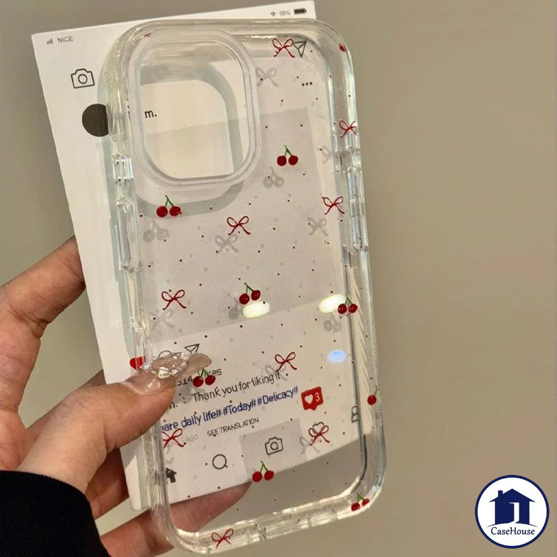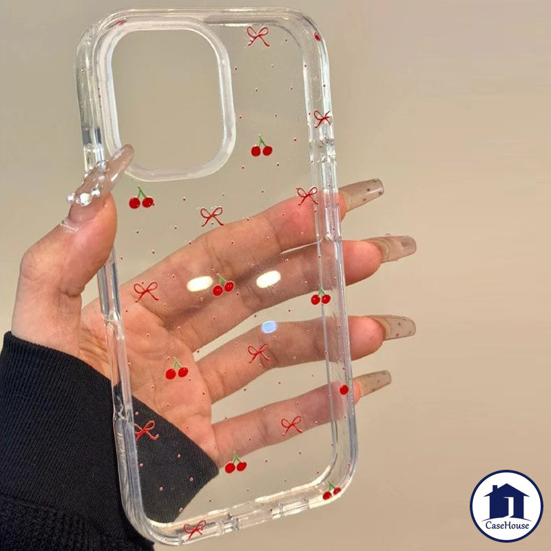 เคสใสนิ่มผูกโบว์สีแดงเชอร์รี่สด เข้ากันได้กับ iPhone 8 7 Plus 15 11 12 Pro Max XR 14 13 Pro Max X XS Max 11 15 13 Pro SE