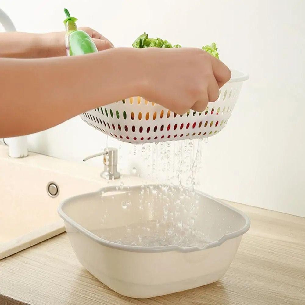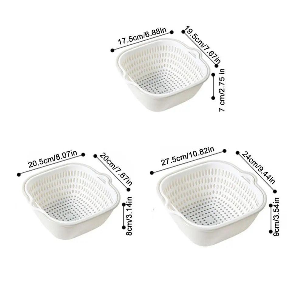 CLEMMENT 3 ชิ้น/เซ็ตผักผลไม้ Drainer, Multifunctional Stackable ตะกร้าระบายน้ํา,Double-Layer พลาสติกอ่างล้างหน้าซักผ้าอาหาร