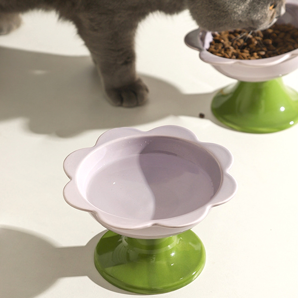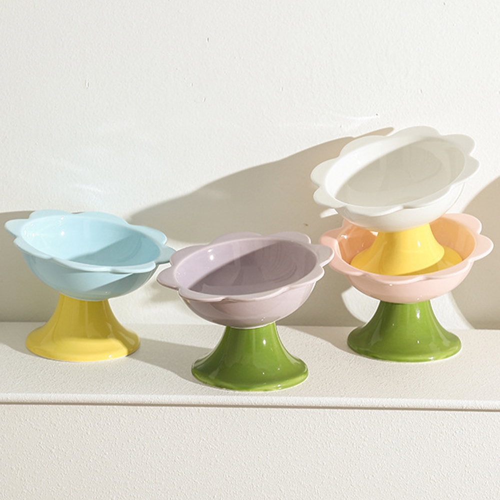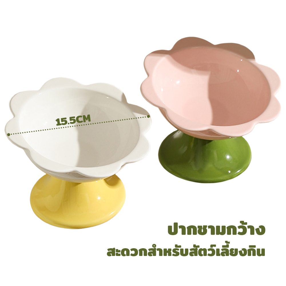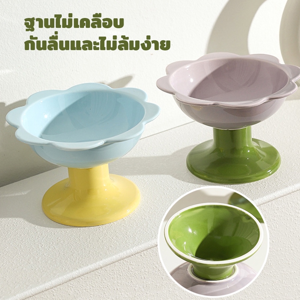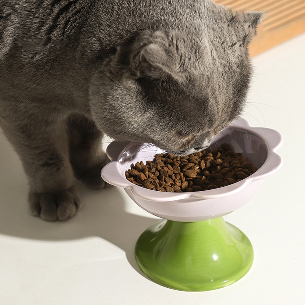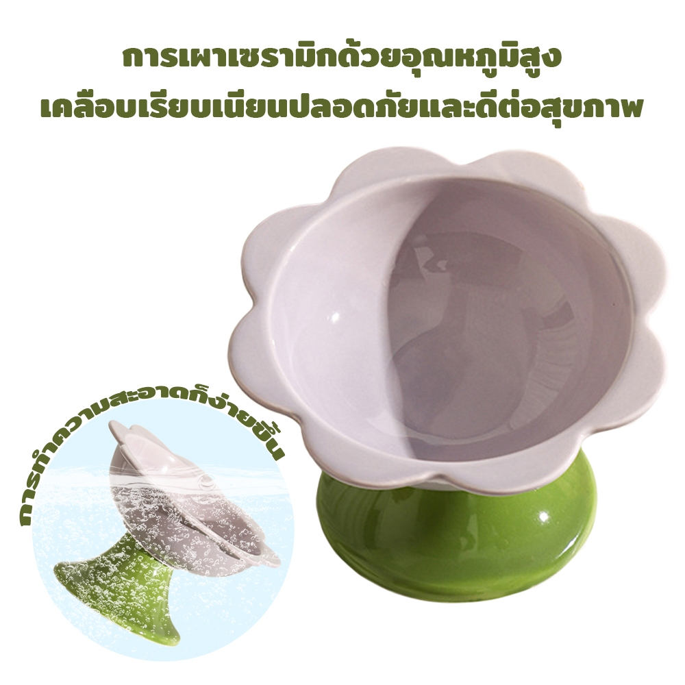PetStern ชามอาหารแมวเซรามิก ความจุขนาดใหญ่ 200 มล รูปร่างกลีบดอก ชามเซรามิค ทรงสูง ป้องกันการพลิกคว่ํา