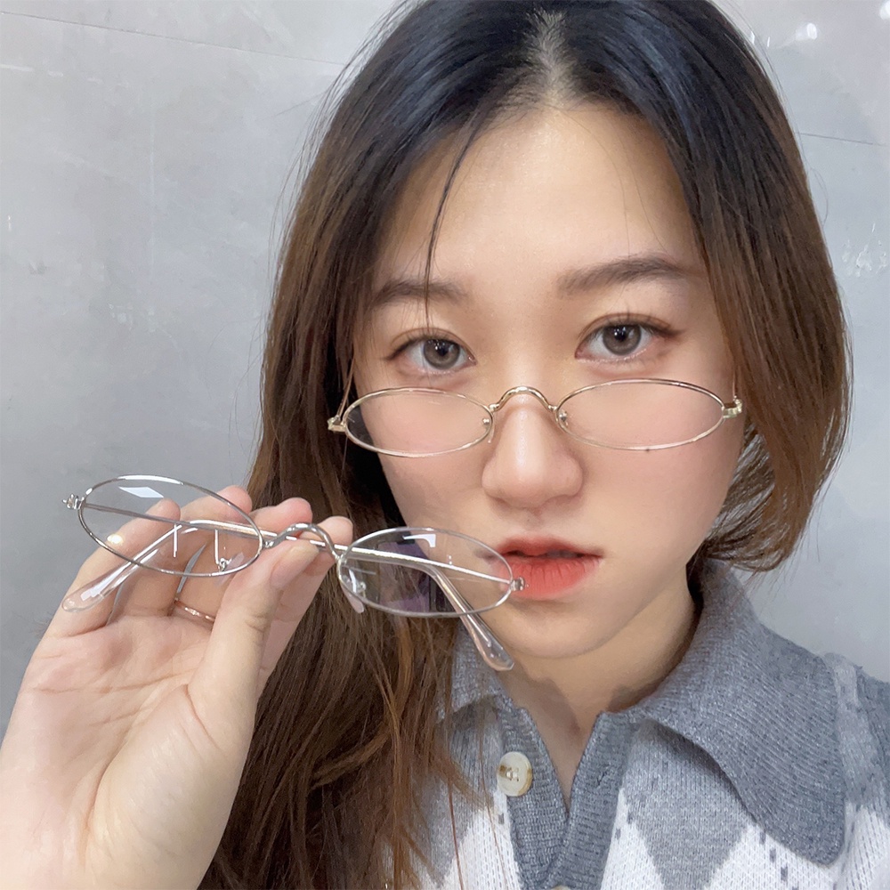 แว่นตาป้องกันสีฟ้า-แฟชั่น,วินเทจ-สําหรับสุภาพสตรี-ป้องกันดวงตา,ป้องกันแสงสะท้อน-แว่นตากรอบโลหะรูปไข่-แว่นตาแสงแบนสากล-แว่นตาตกแต