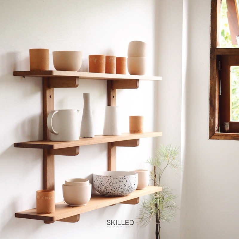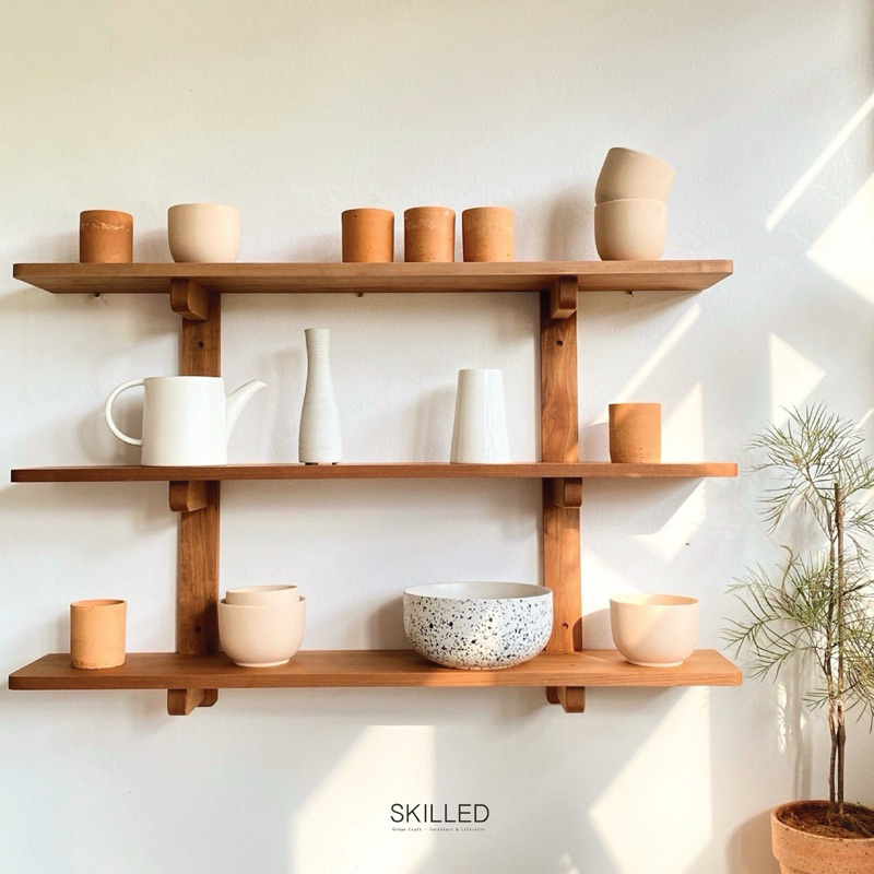 Display ผนังบ้าน ร้าน คาเฟ่ หรือใดใดให้น่ารักด้วยชั้นวางติดผนังไม้ตะแบก สีธรรมชาติ