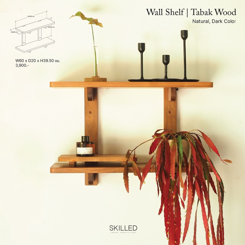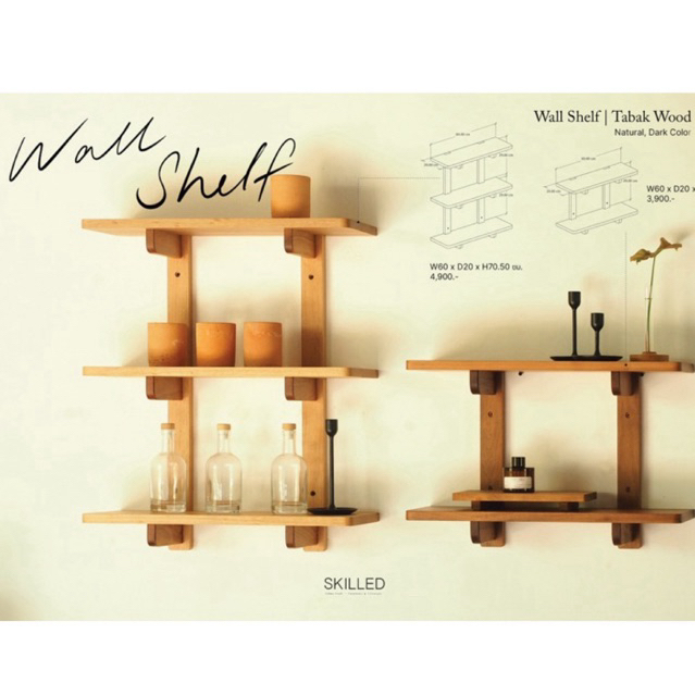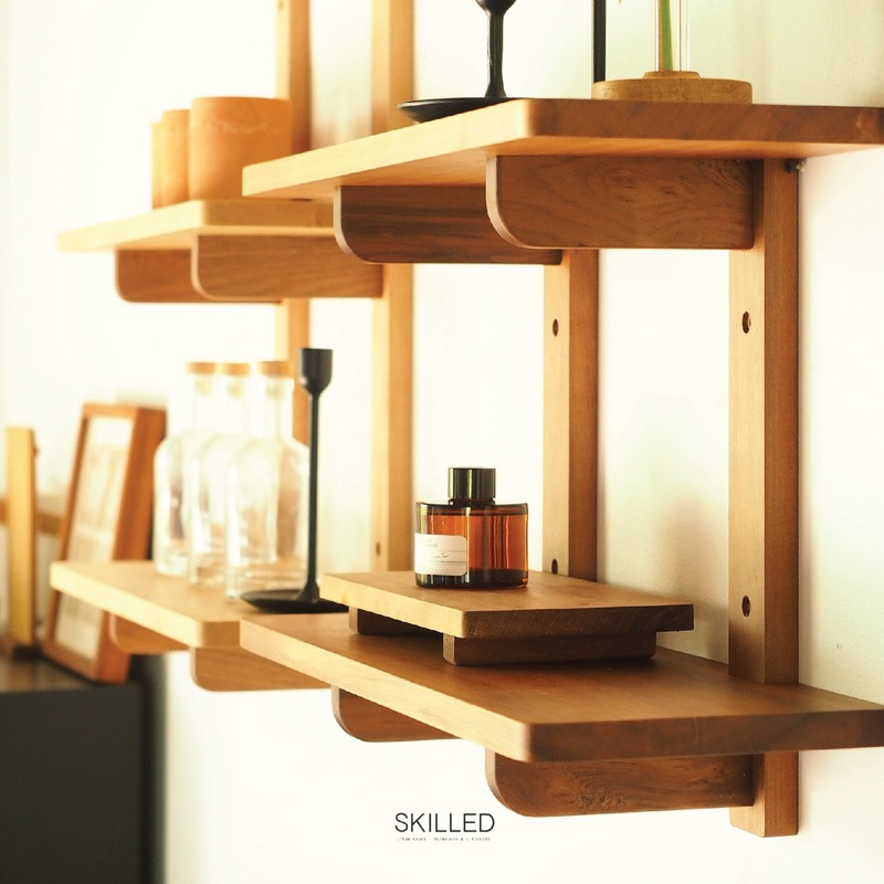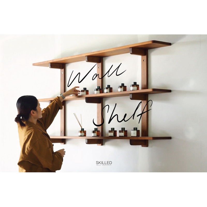 [wall shelf] ชั้นไม้แท้ สำหรับแขวนติดผนัง ใช้แต่งผนังบ้านหรือดิสเพล์วางสินค้า by SKILLED