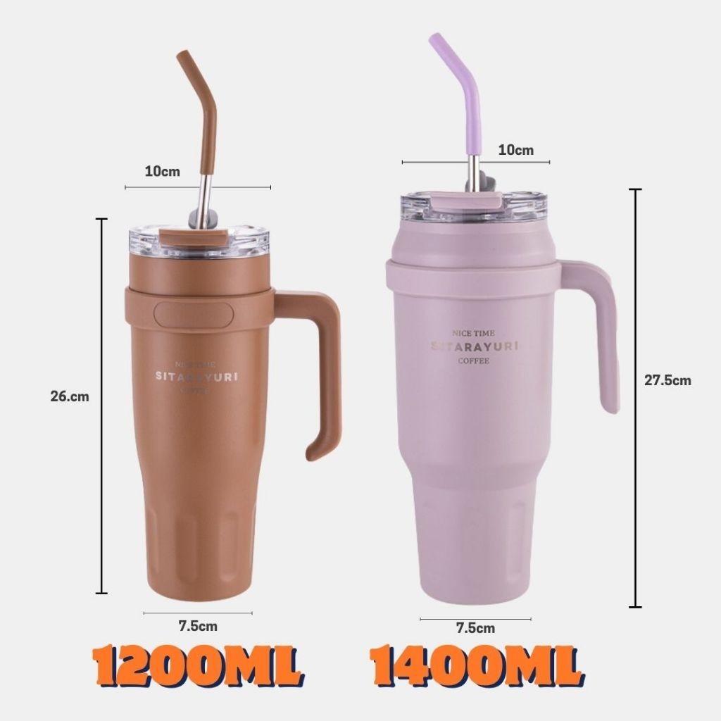 พร้อมส่ง SITARAYURI แก้วเก็บความเย็น หูจับข้างแก้วแข็งแรง สแตนเลส 304 ขนาด 1200ml , 1400ml