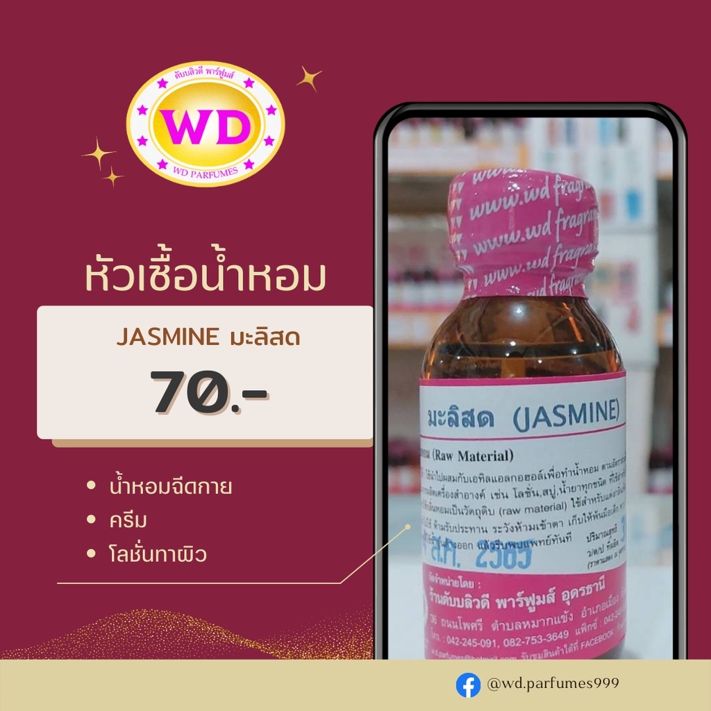 หัวน้ำหอม 100% JASMINE มะลิสด หัวเชื้อน้ำหอม กลิ่นติดทนทาน สวนดอกไม้ ขนาด 30 มล. พร้อมส่ง