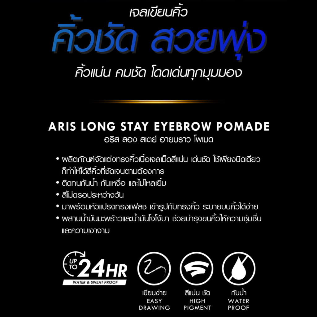 Browit น้องฉัตร เจลเขียนคิ้ว Aris Long Stay Eyebrow Pomade บราวอิท ครีมเจลเขียนคิ้ว กันน้ำ ติดทน