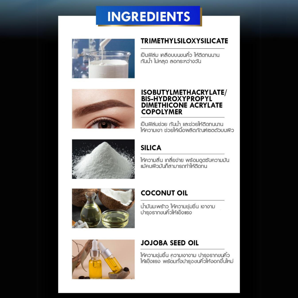 ● เม็ดสีแน่น เด่นชัด ใช้เพียงนิดเดียวก็ให้สีคิ้วที่ชัดเจนตามต้องการ