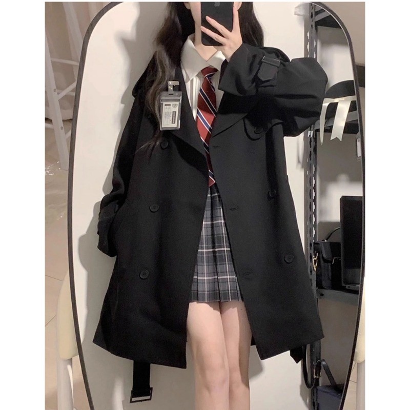 ฤดูใบไม้ผลิฤดูใบไม้ร่วงผู้หญิงสไตล์เกาหลีเรียบง่ายลําลองหลวมเสื้อกันลมกลางความยาว