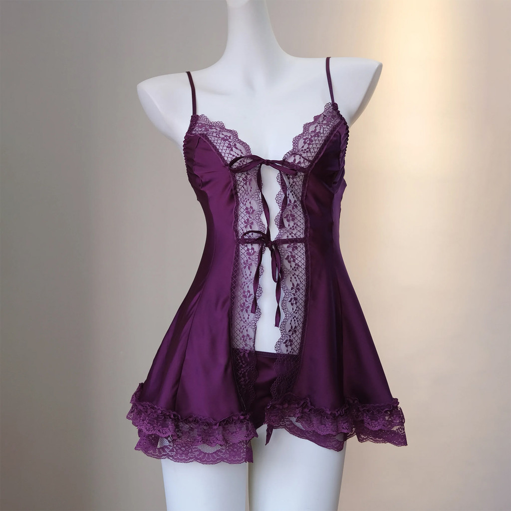 ?Sexy Love?เดรสลูกไม้ ชุดนอนกระโปรง เดรสคอวี ช่องเปิดด้านหน้า เซ็กซี่ ส่งไวจากไทย