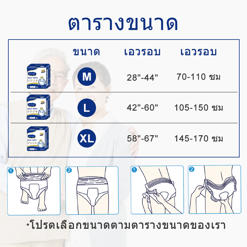 Belove ผ้าอ้อมผู้ใหญ่ ซึมซาบเร็ว จัดส่งเร็ว สูงดูดซึม 2000CC ใช้ได้ทุกเพศและเปลี่ยนได้ง่าย M/L/XL (1 แพ็ค/10 ชิ้น)