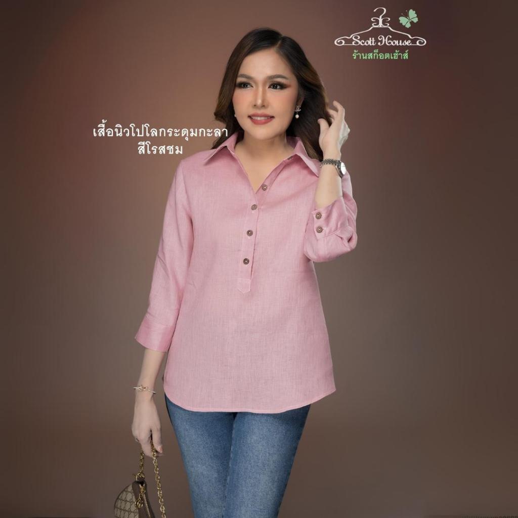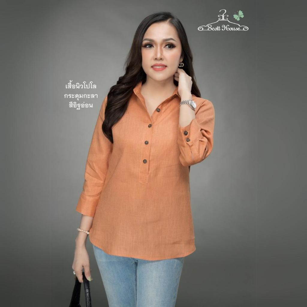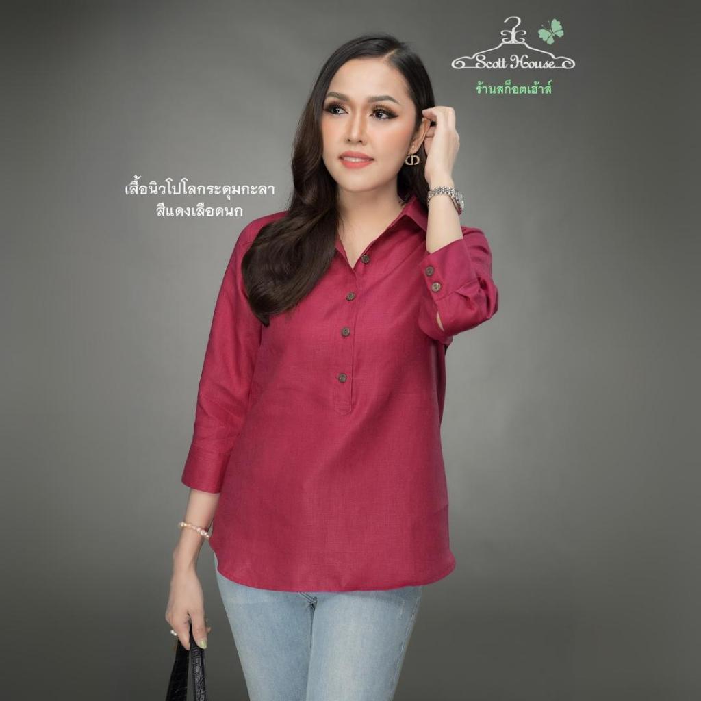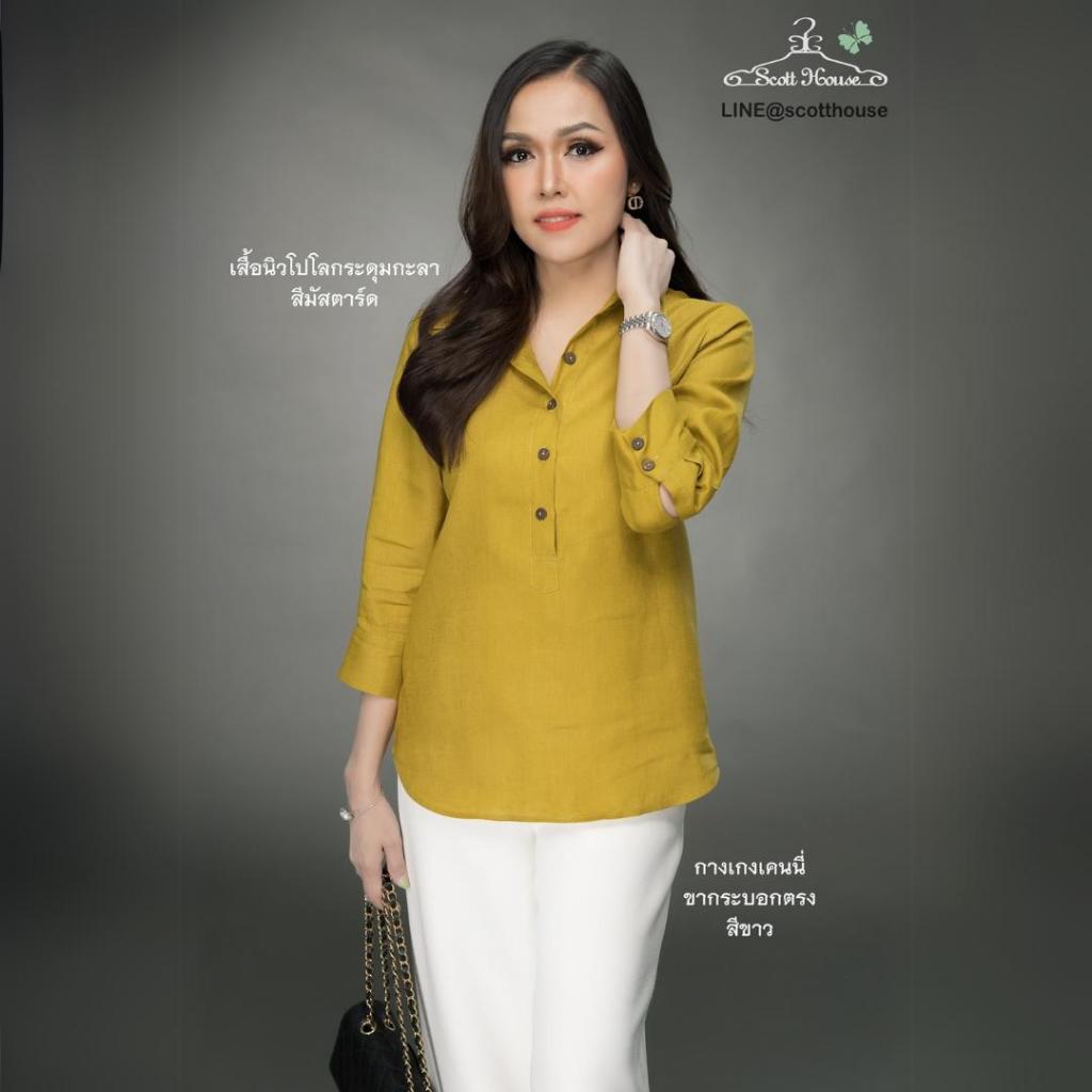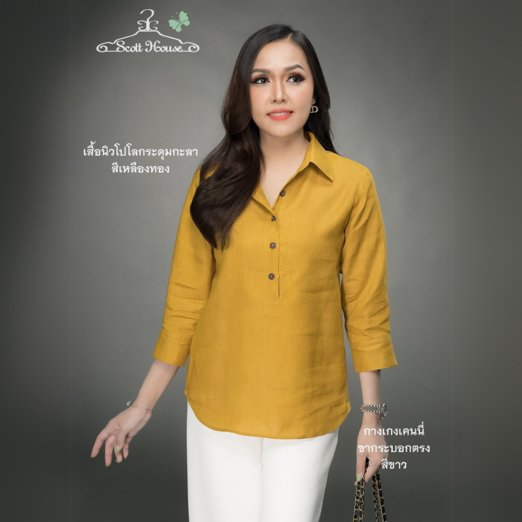 เสื้อลินินแท้100% รุ่นนิวโปโลกระดุมกะลา สีพื้น 1