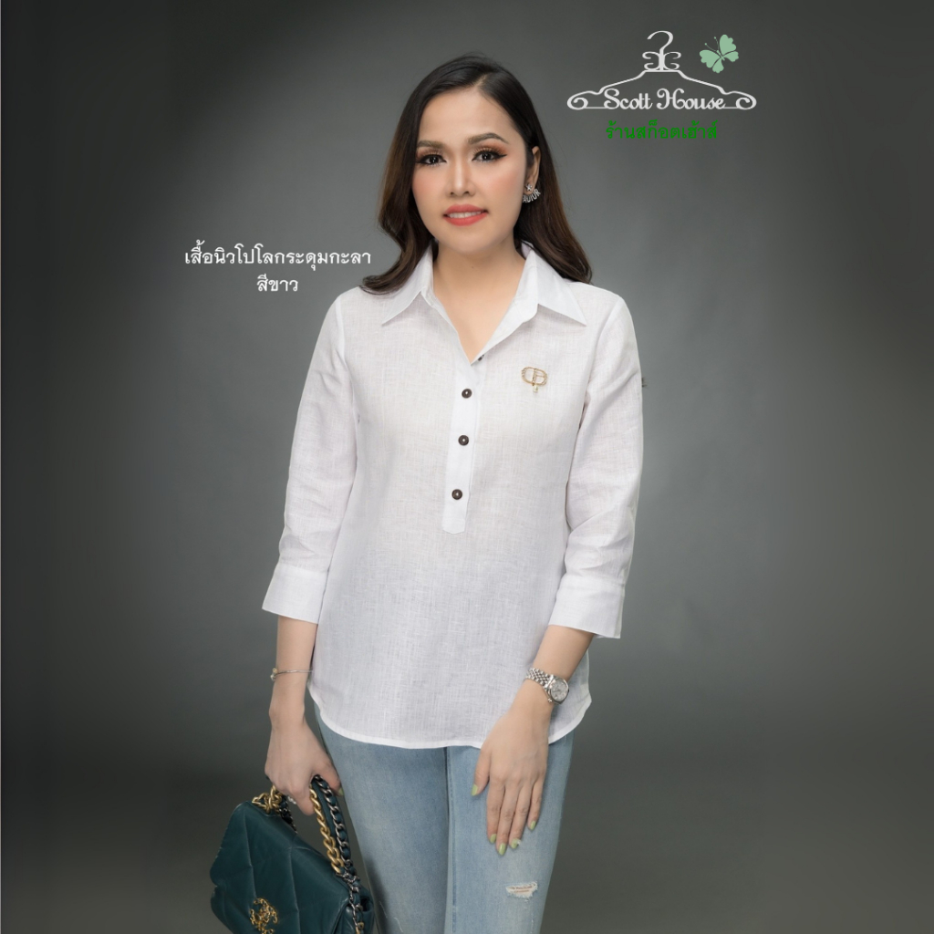 "เสื้อนิวโปโลกระดุมกะลา" ลินินแท้100%