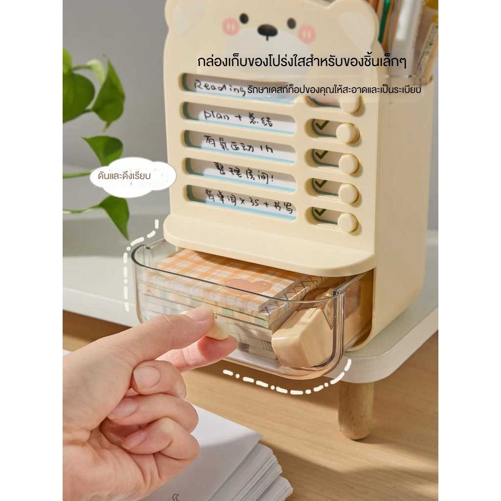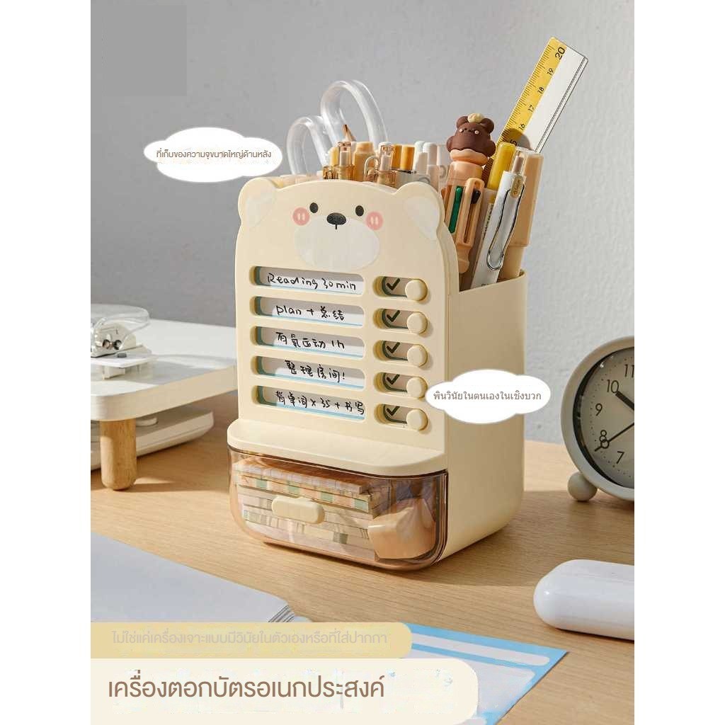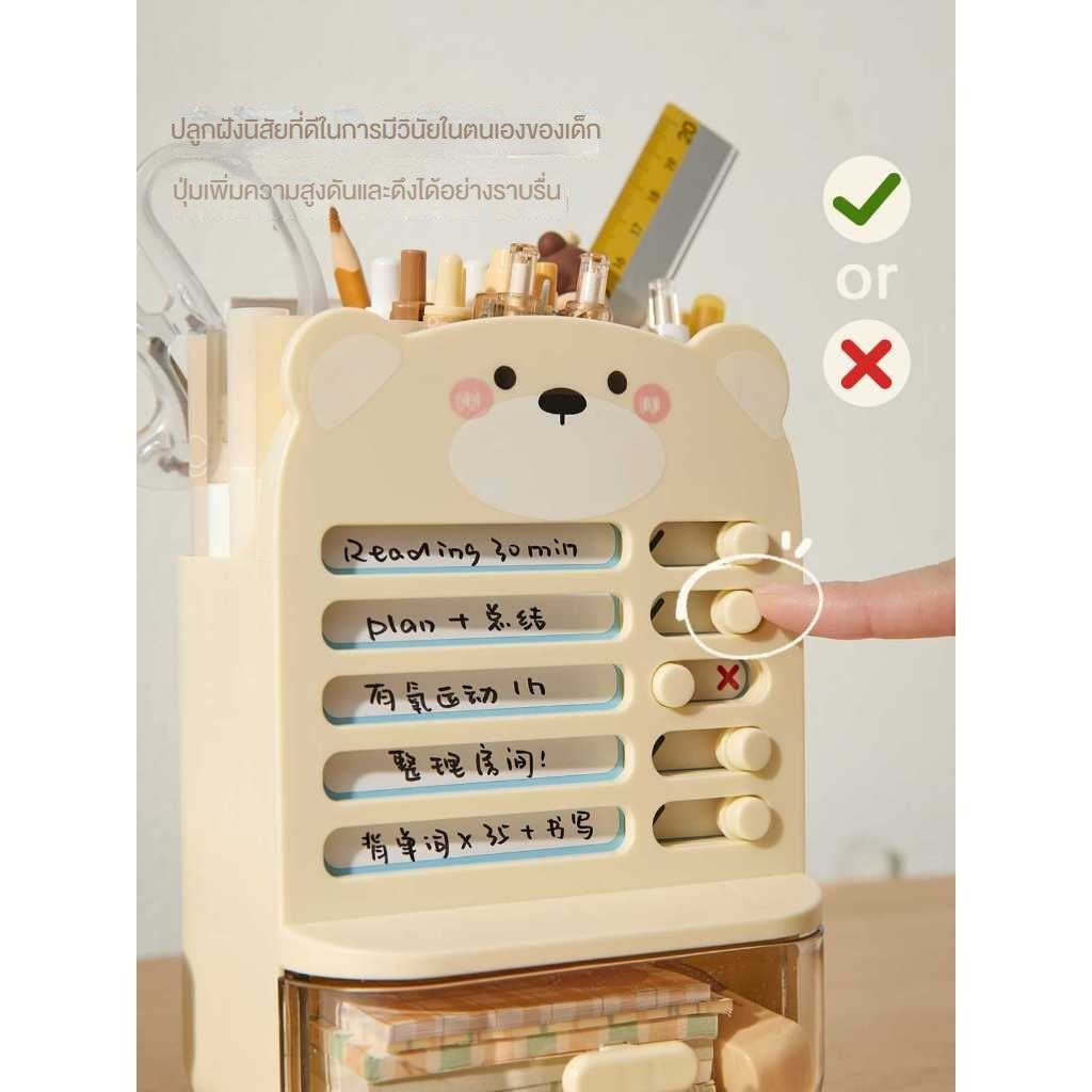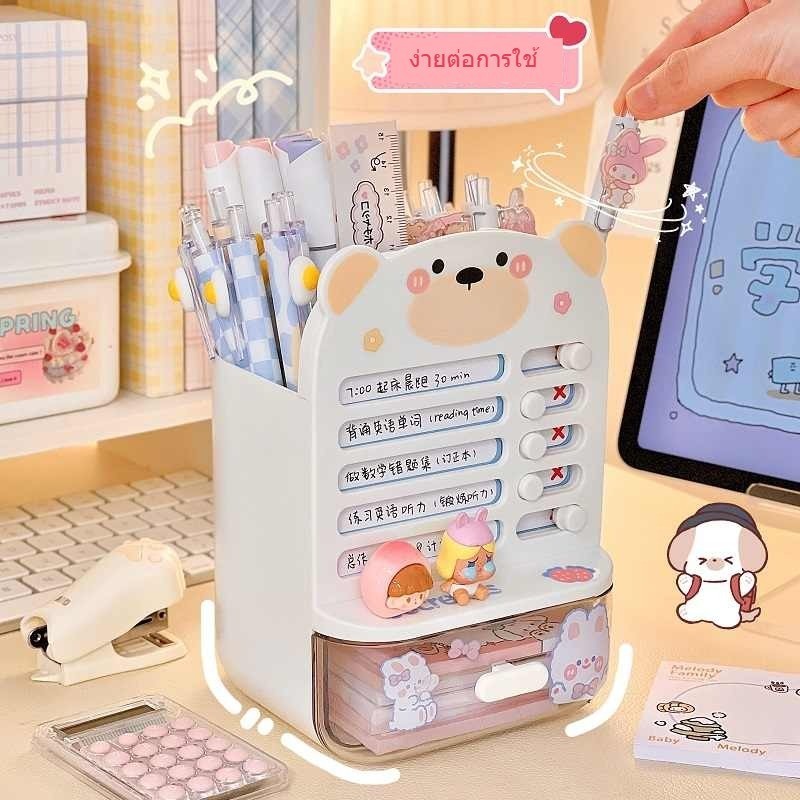 กล่องเก็บอุปกรณ์การเรียนแบบมีลิ้นชักสำหรับเด็กนักเรียนชั้นประถม พร้อมที่ตั้งปากกาและตารางการเรียน สามารถใช้ในการตอกความม