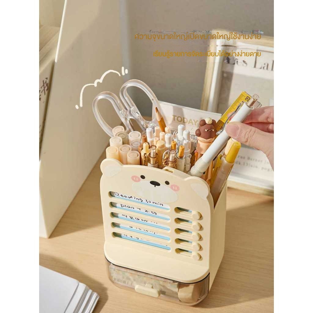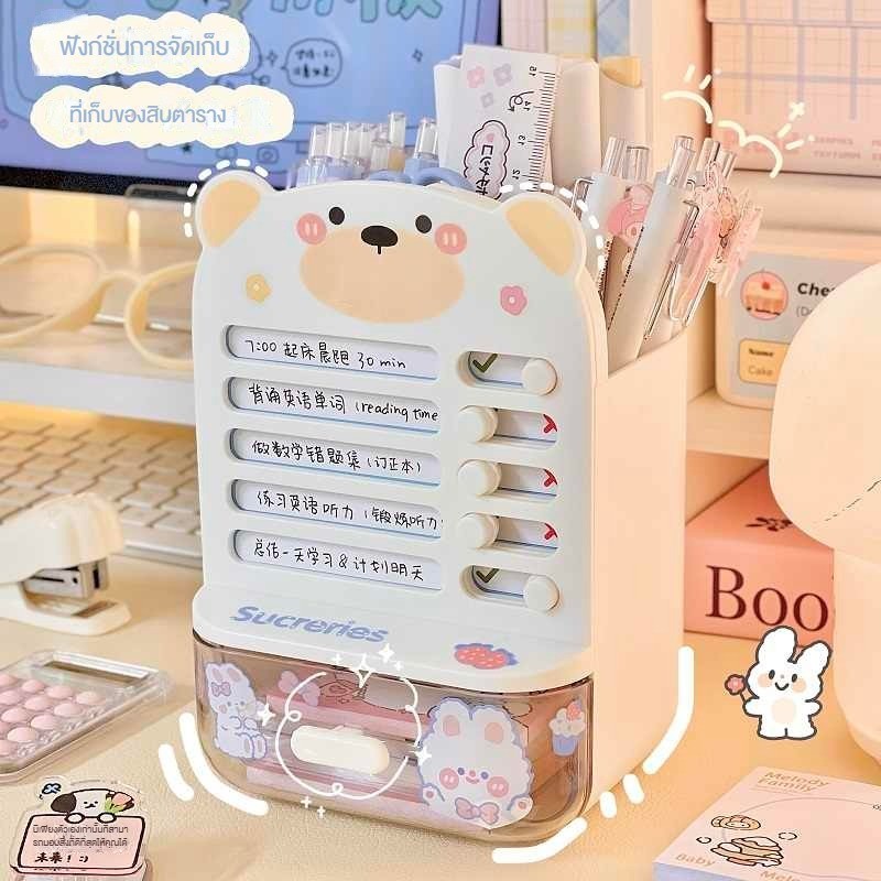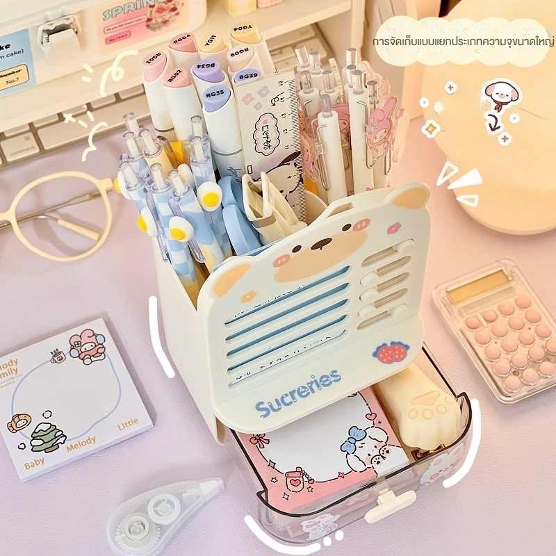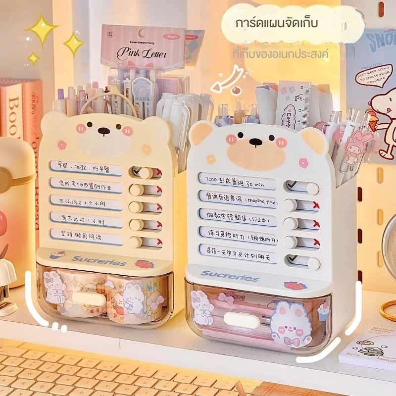 กล่องเก็บอุปกรณ์การเรียนแบบมีลิ้นชักสำหรับเด็กนักเรียนชั้นประถม พร้อมที่ตั้งปากกาและตารางการเรียน สามารถใช้ในการตอกความม