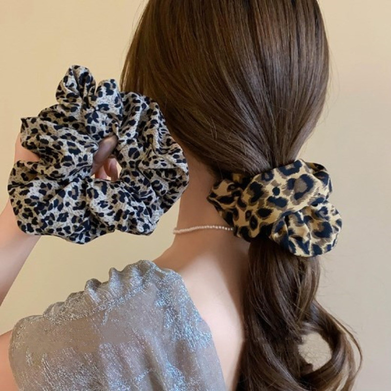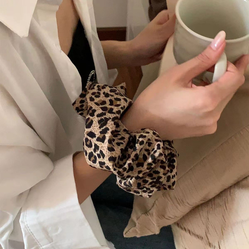 Autumn Winte เสือดาวพิมพ์ Scrunchie – เกาหลี แฟชั่น สง่างาม หวาน ย้อนยุค – ลําไส้ขนาดใหญ่แหวนผม – มัดผมระดับพรีเมียม – ห่วงผมความยืดหยุ่นสูง -วงผมผู้หญิง